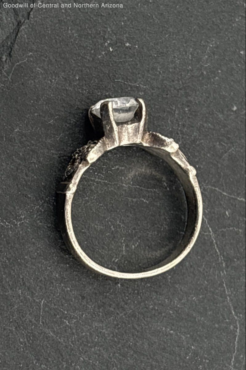 как выглядит 925 Sterling Silver Cocktail CZ Marcasite Ring Size 7 - 4g фото
