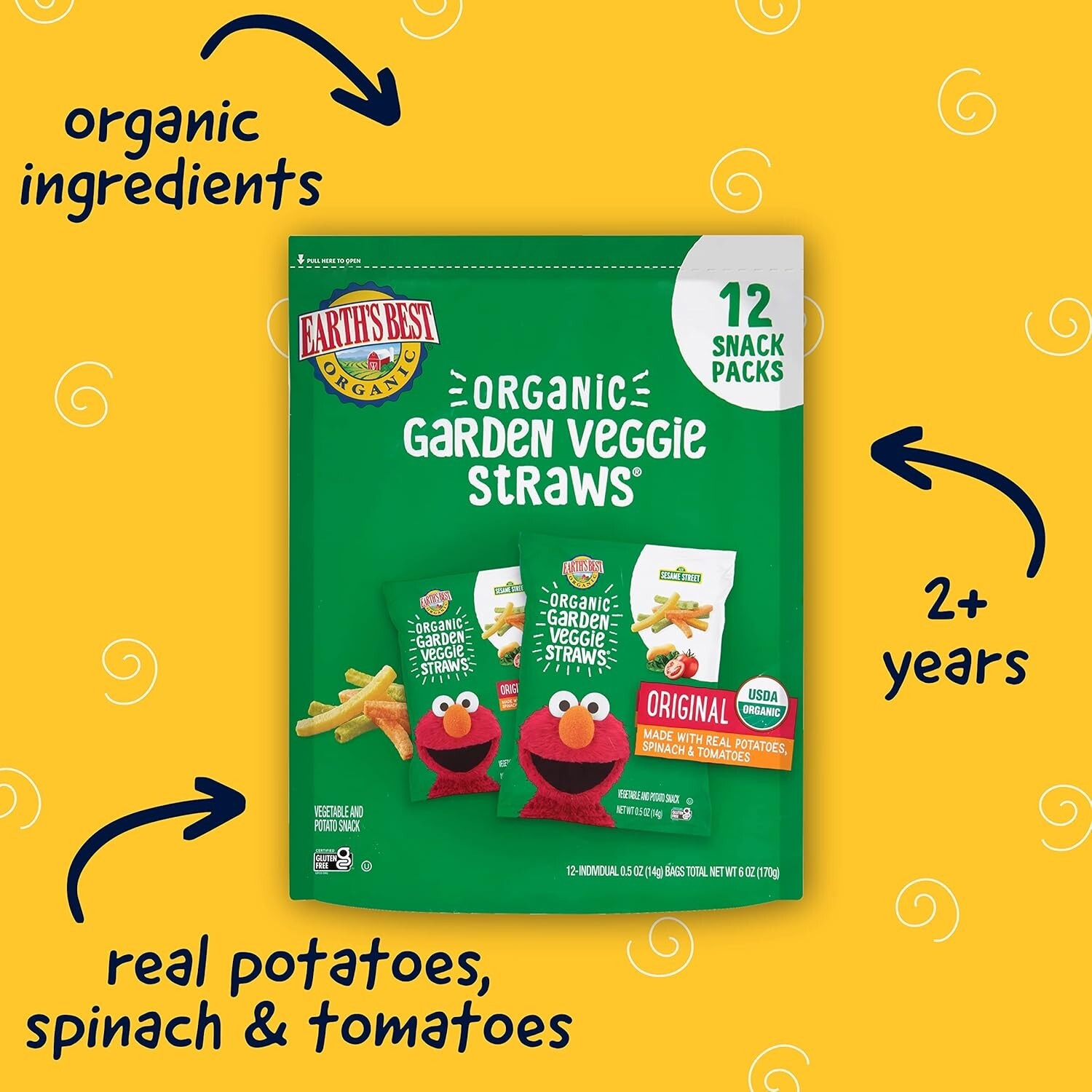 Health-Conscious Organic Kids Snacks - Sesame Street Veggie Straws, 12 Count