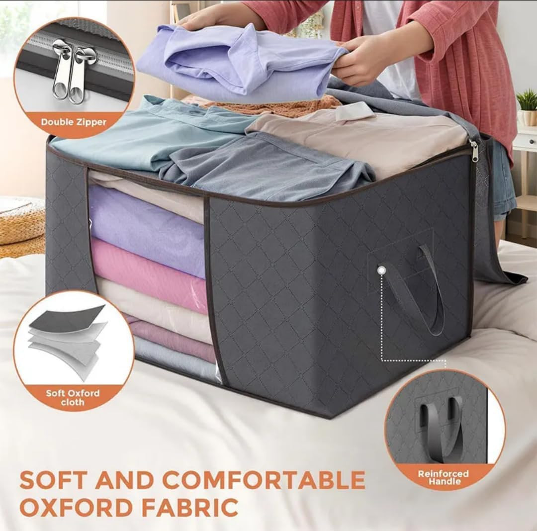 90L Large Foldable Clothes Storage Bag - Breathable Fabric Closet Organiser with