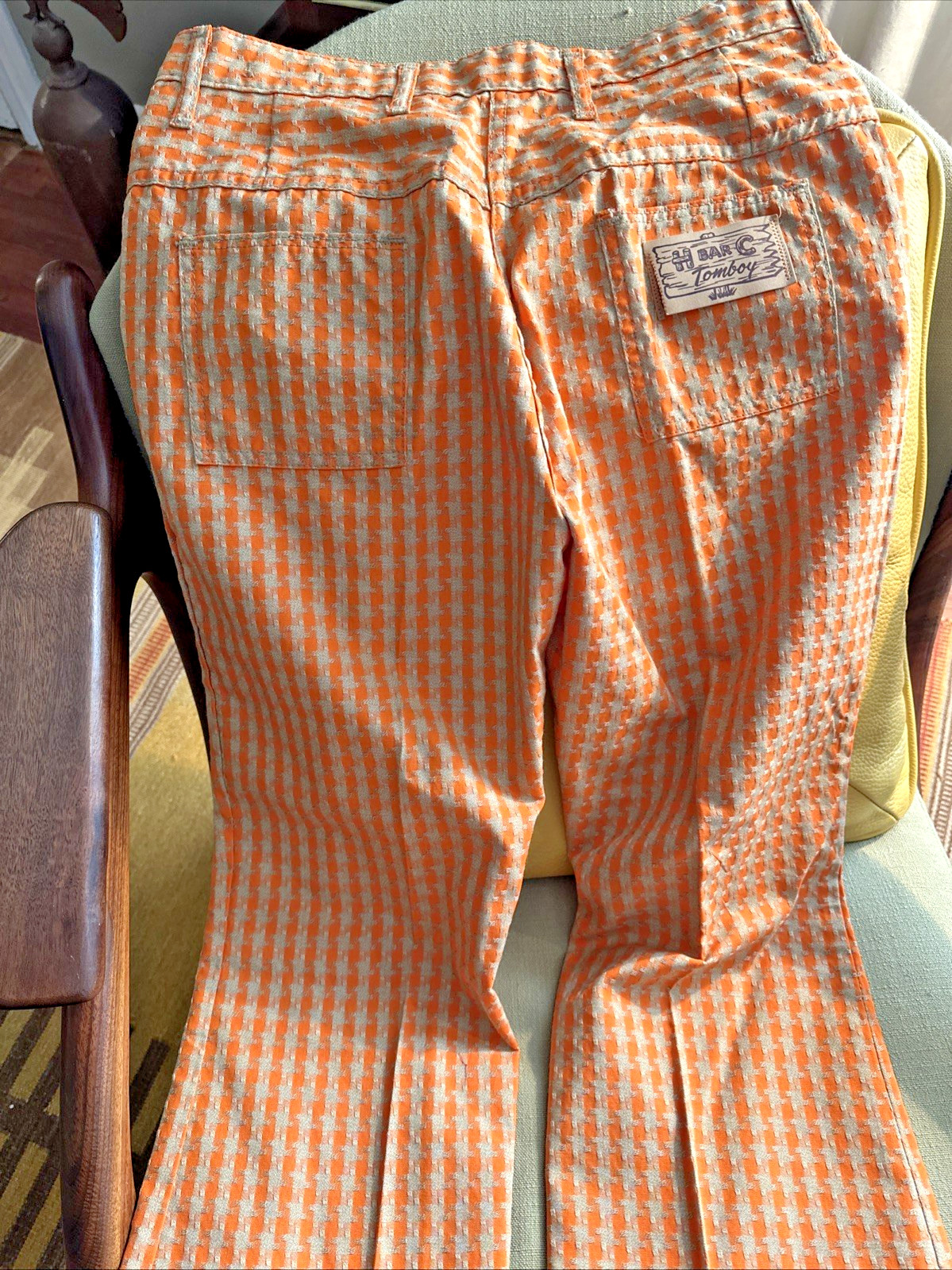 VTG Women s H Bar C Orange Check Western Tomboy Pants 30 x 33.5- Unhemmed