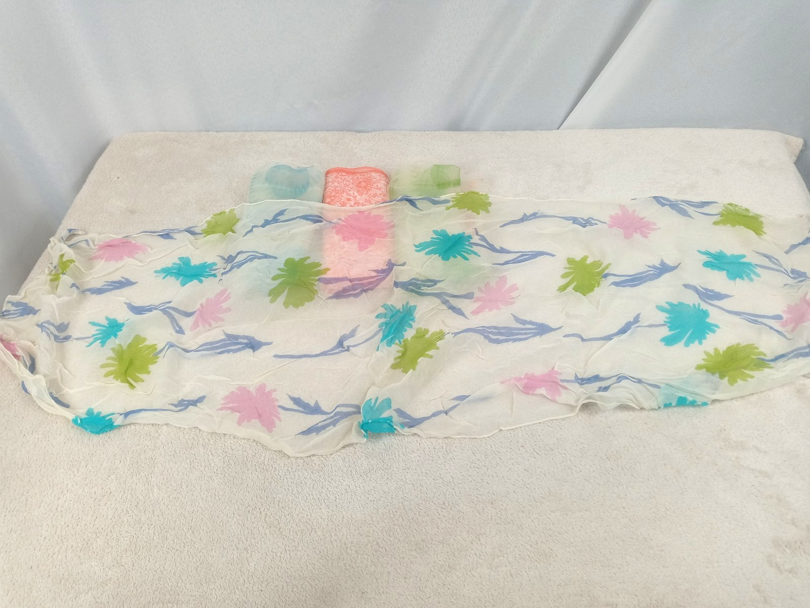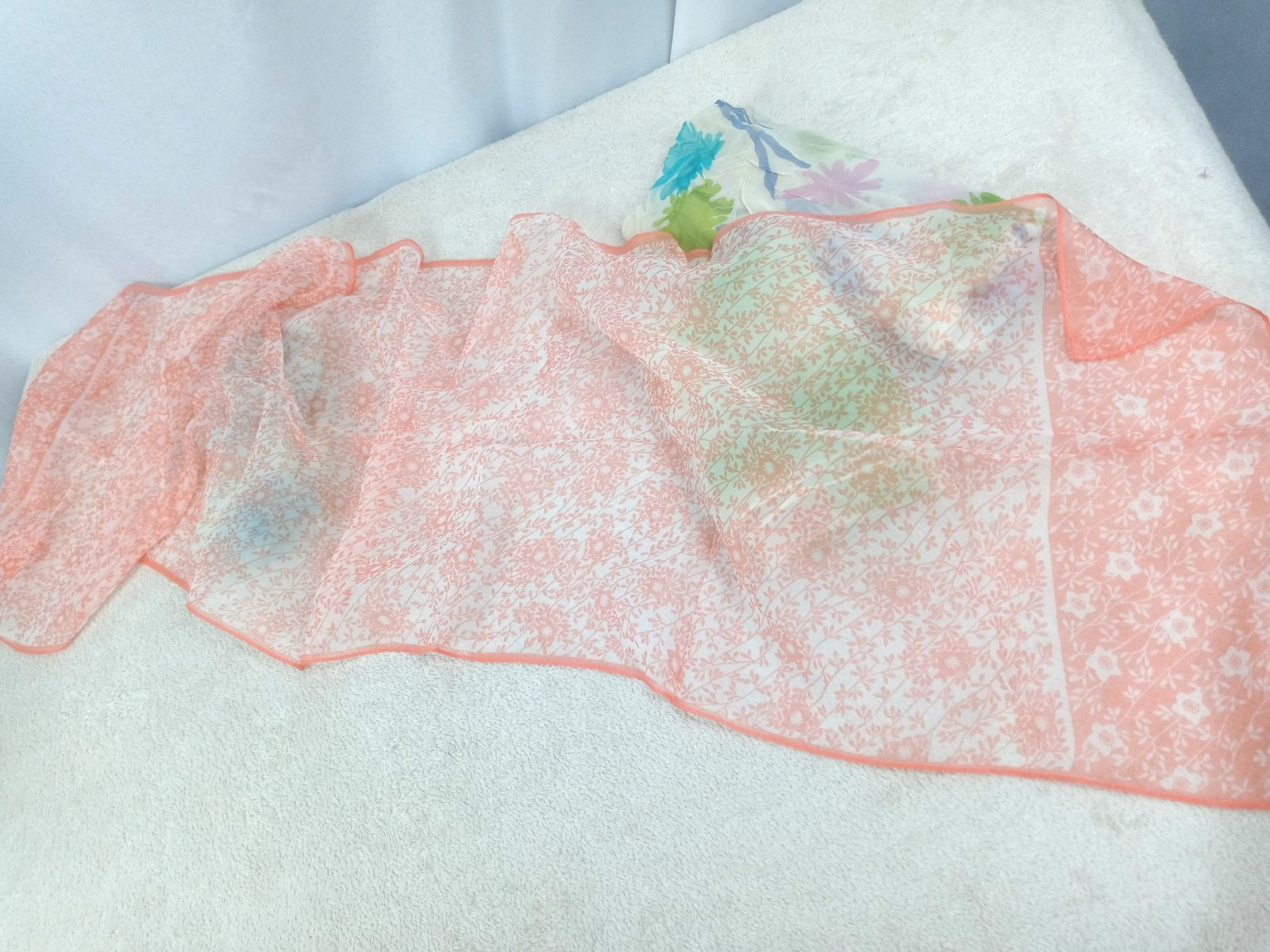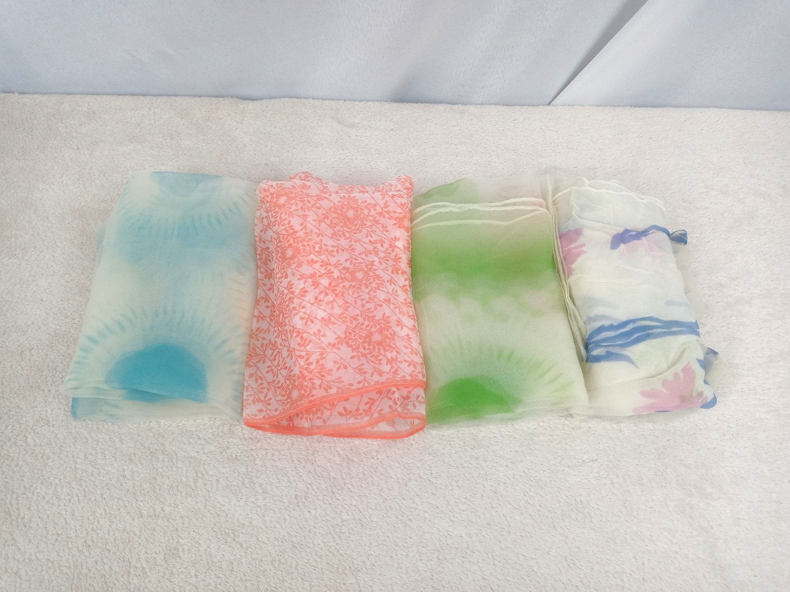 Lot of 4 Vintage Nylon Scarves Sheer Chiffon Head Neck Scarf Floral Japan