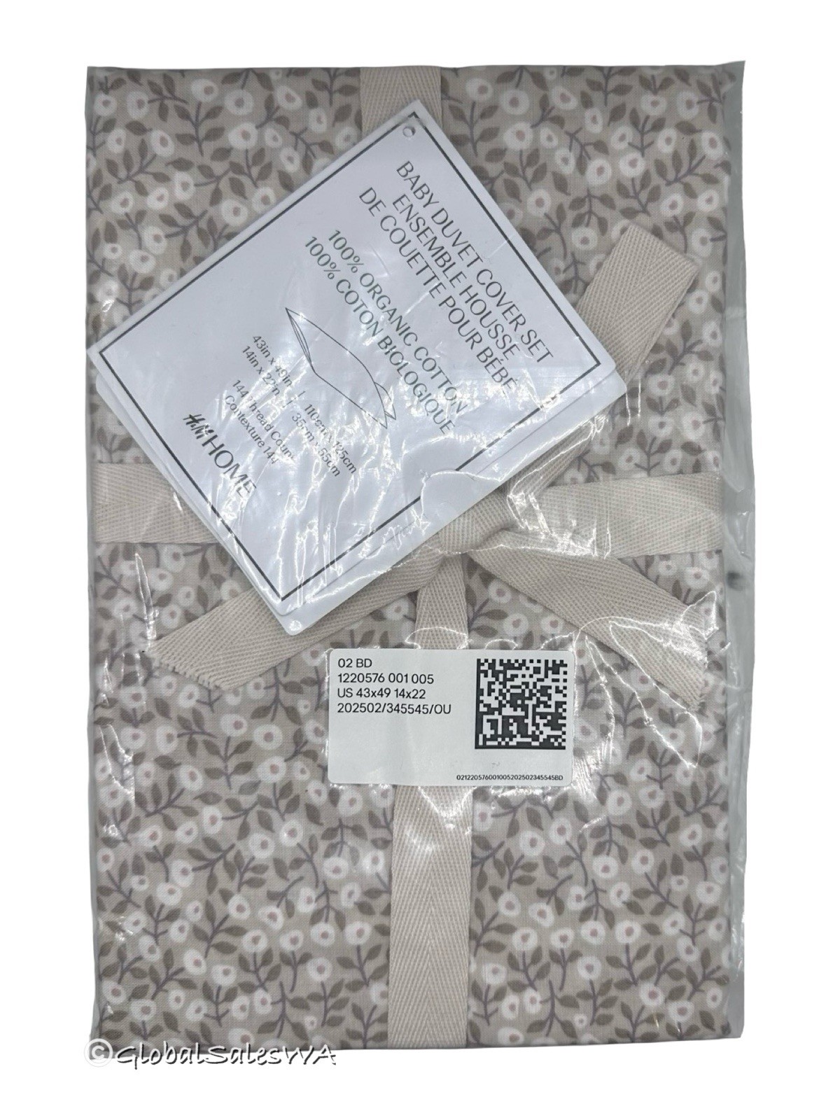 как выглядит H M Home Light Beige Floral Patterned Cotton Baby Crib Duvet Cover Set NIB фото