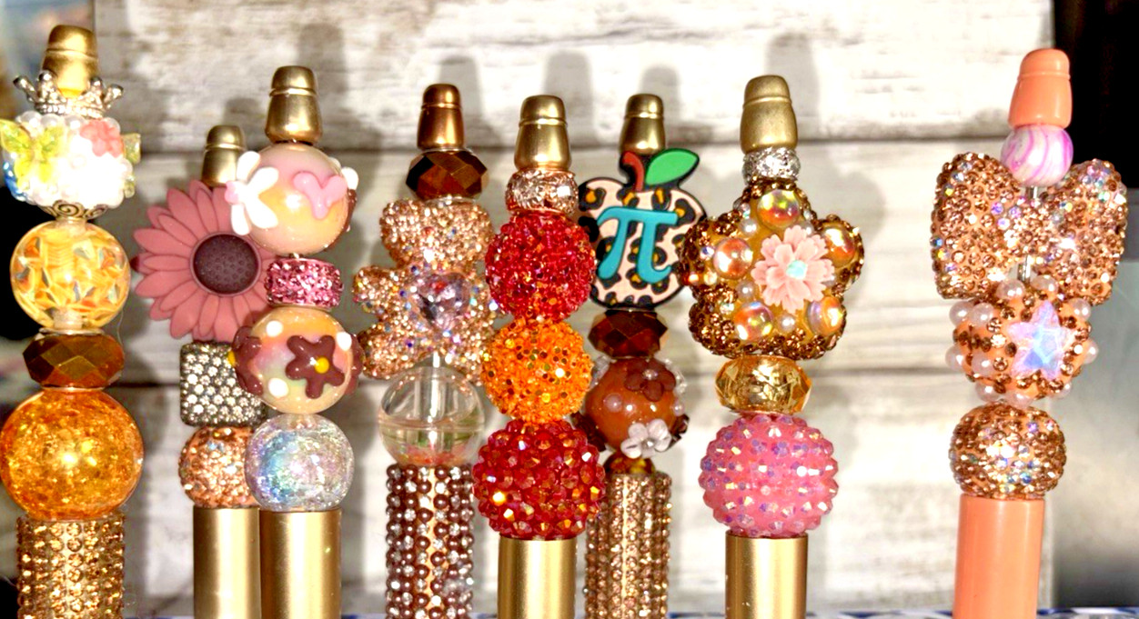 8 Handcrafted FANCY Beaded Pens with each having 1 ink refill