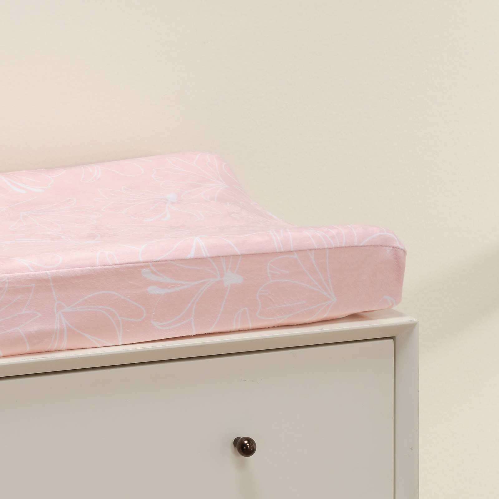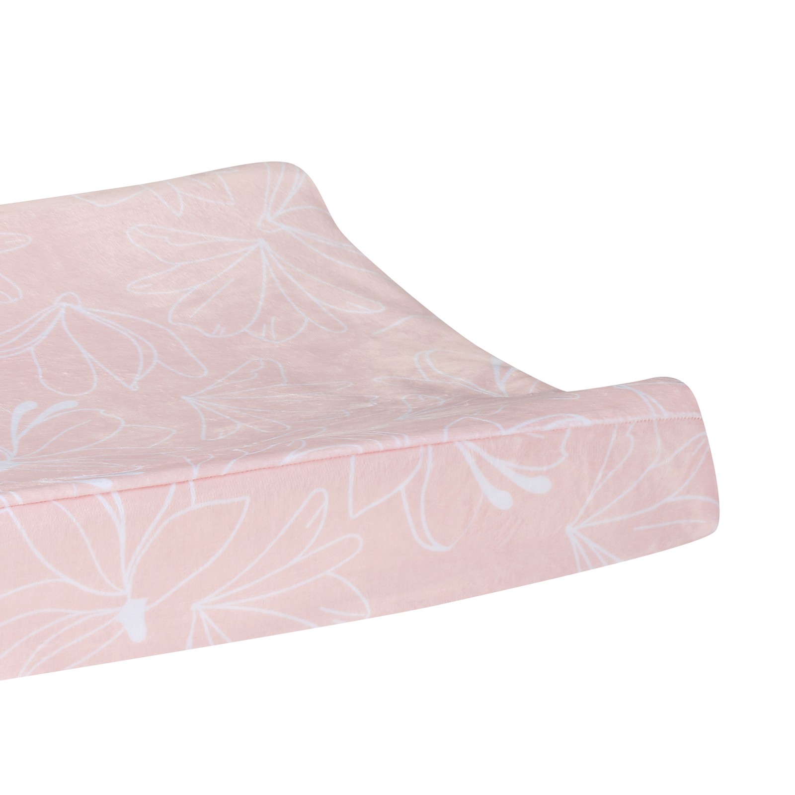 как выглядит Lambs Ivy Petals Soft Pink/White Floral Outline Baby Changing Pad Cover фото
