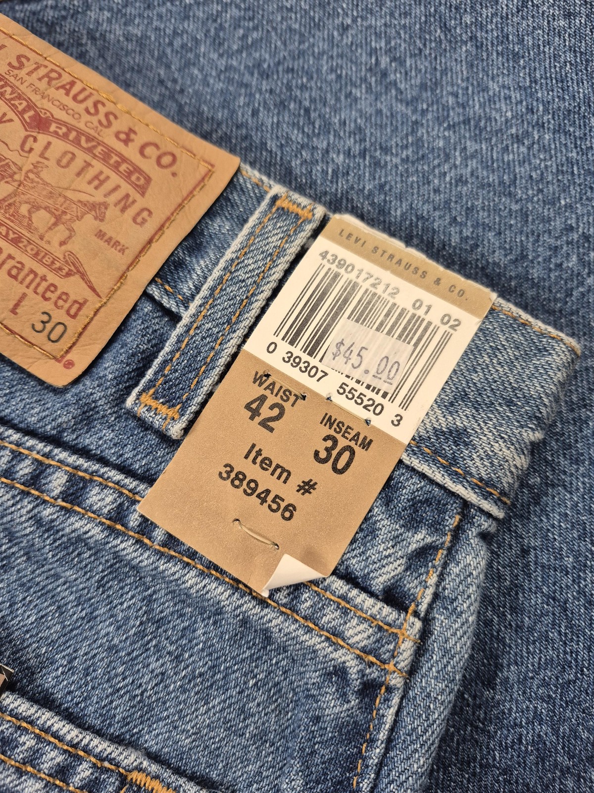 как выглядит VTG Levis Relaxed Fit Straight Leg Jeans Mens 42x30 Blue Denim NWT фото