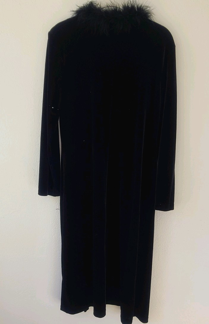 как выглядит Vintage Black Velvet Robe With a Faux Feather Trim. Romantic Coquette. size M. фото