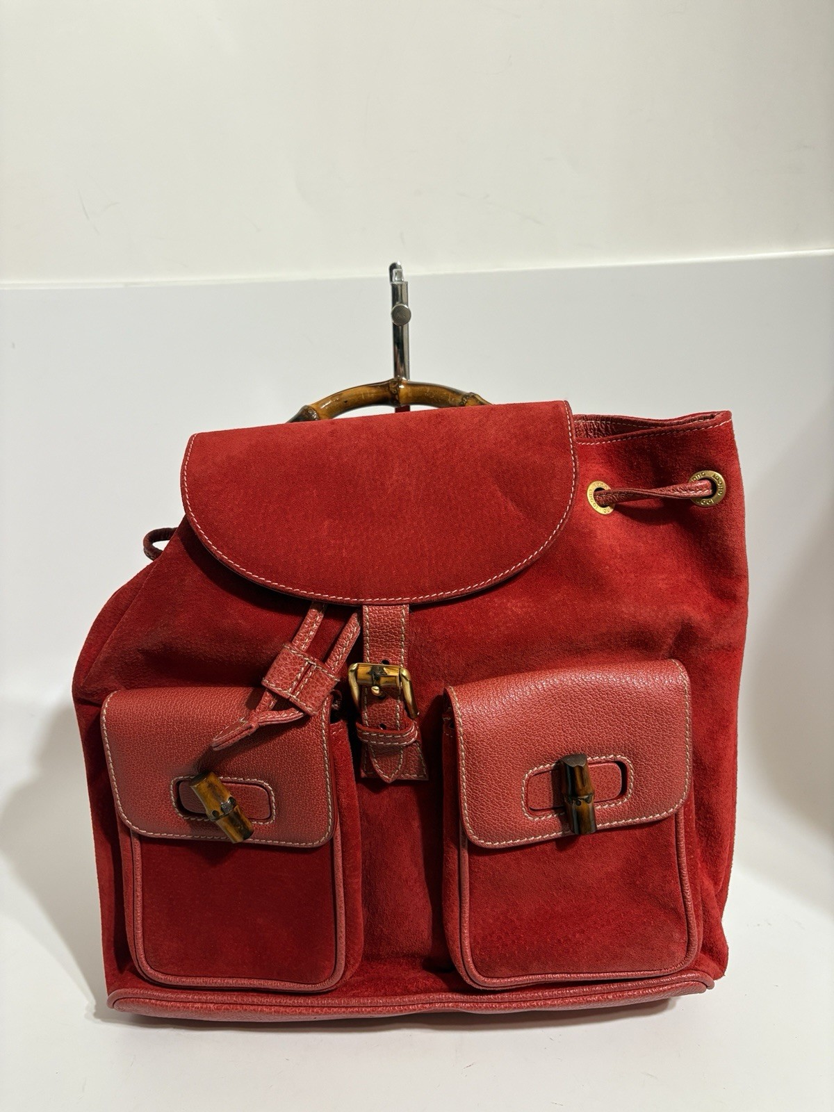 Vtg Gucci Red Suede Leather Backpack