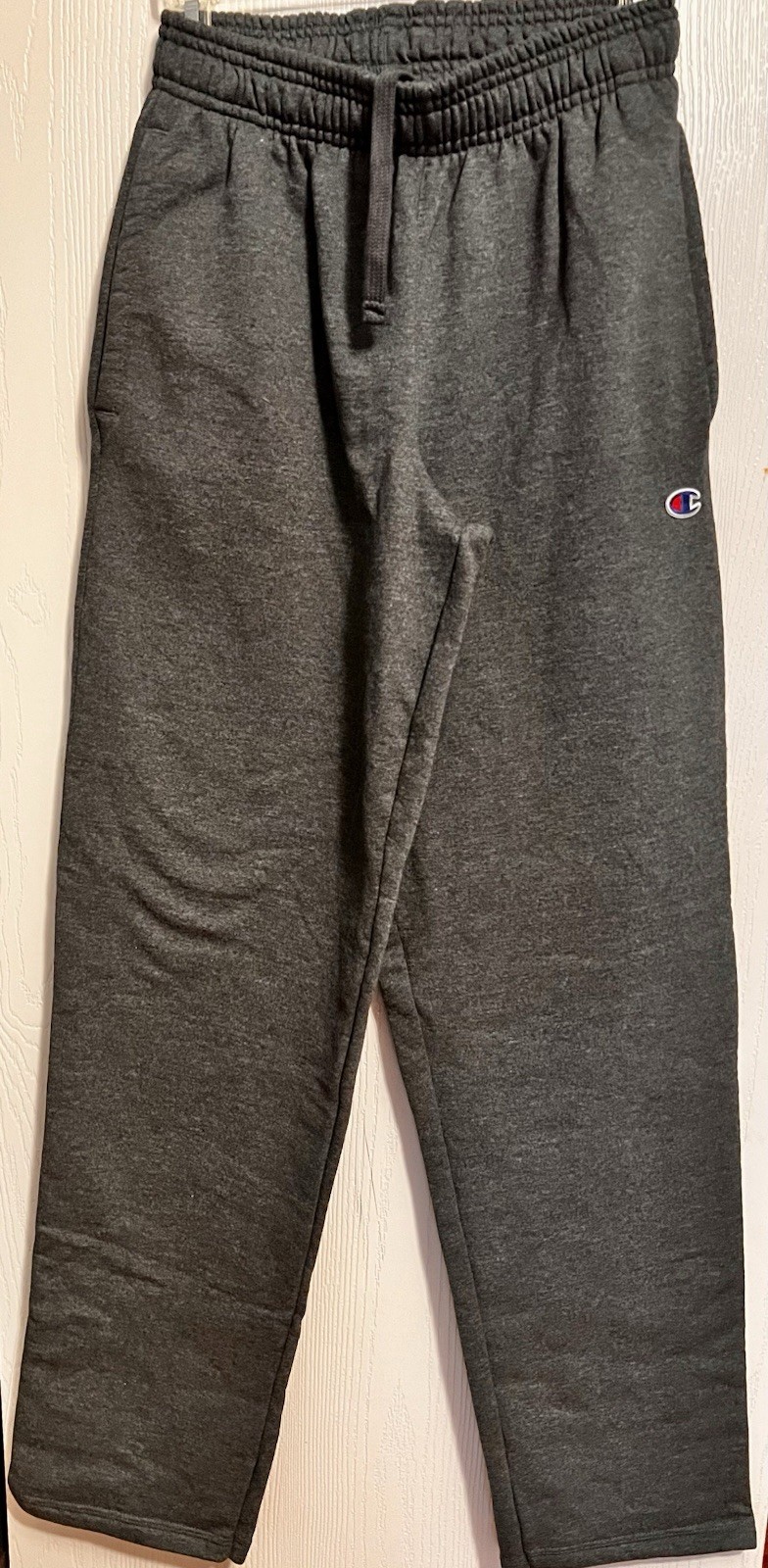 как выглядит Champion Mens Powerblend Fleece Open Bottom Pants Dark Grey, Small фото