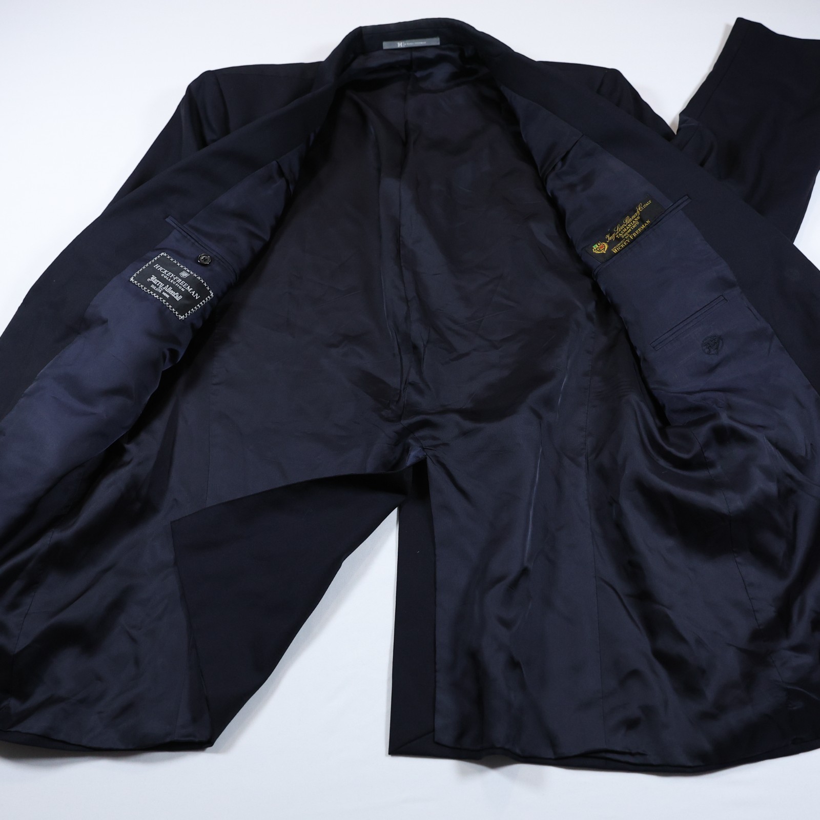 Hickey Freeman Men s 44L Navy Blazer 100 Wool Loro Piana Tasmanian Made USA
