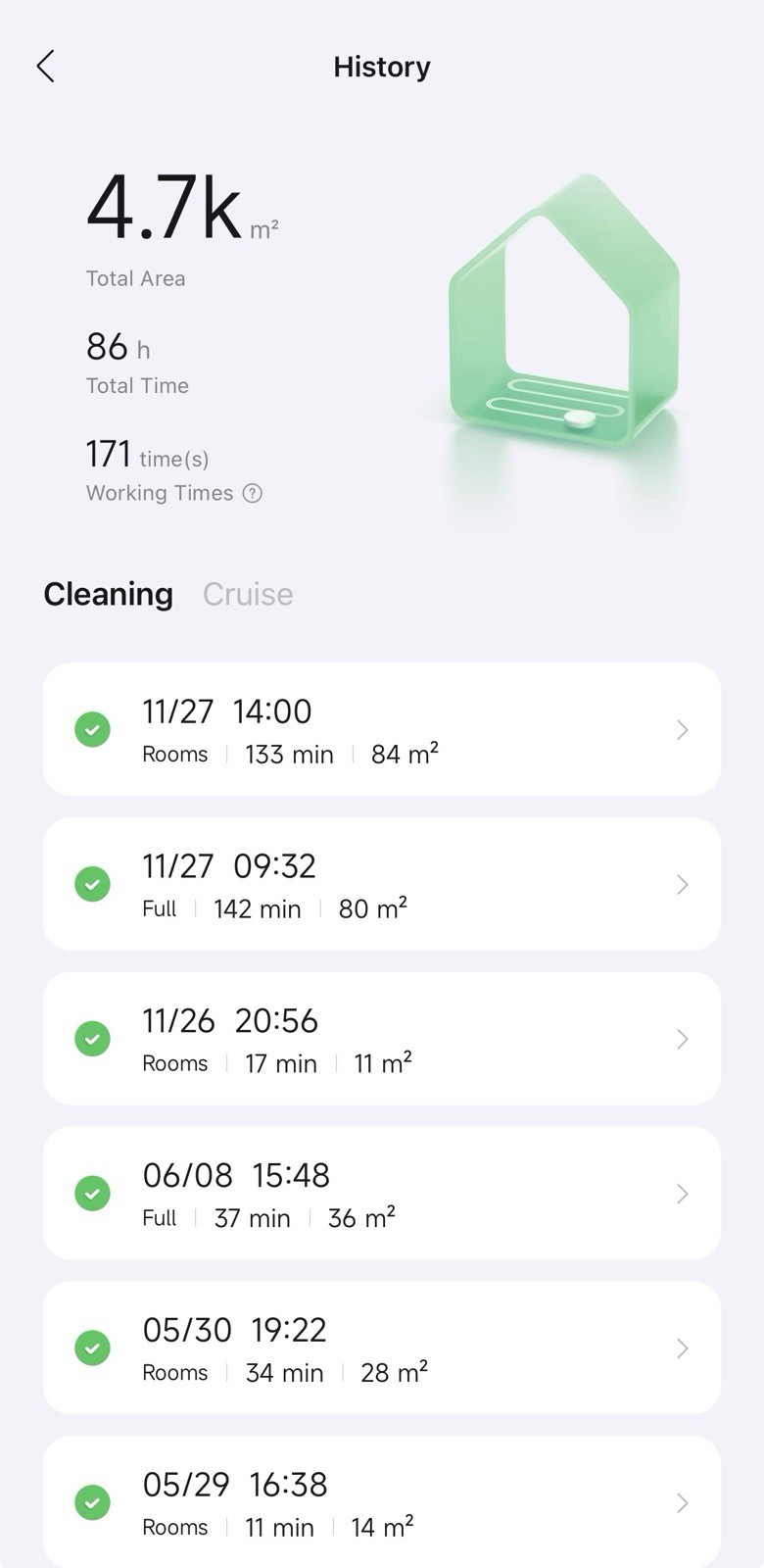 App Features: Remote Viewing via Camera, Real-Time Tracking, Maintenance Reminders, Cleaning History, Firmware Updates, Remote Control via App, Scheduling