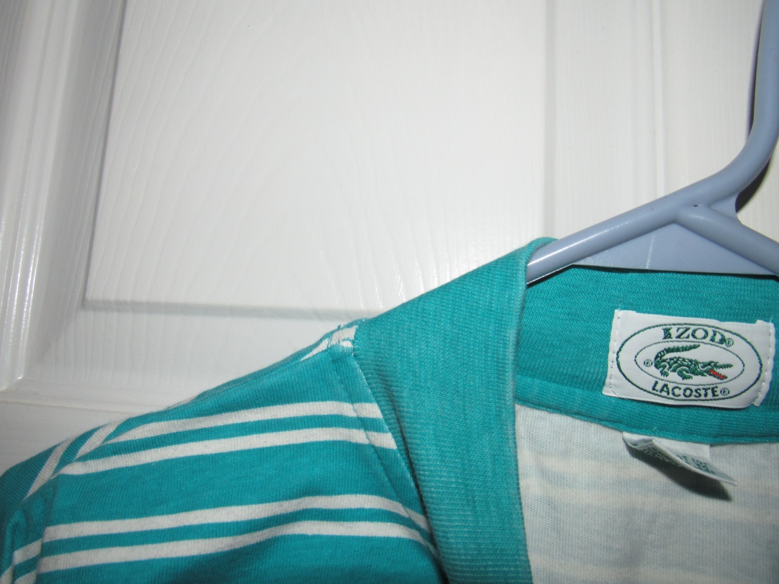 как выглядит Vintage IZOD LACOSTE Mens Medium Teal Blue White Stripe Mock Neck Shirt Gator фото