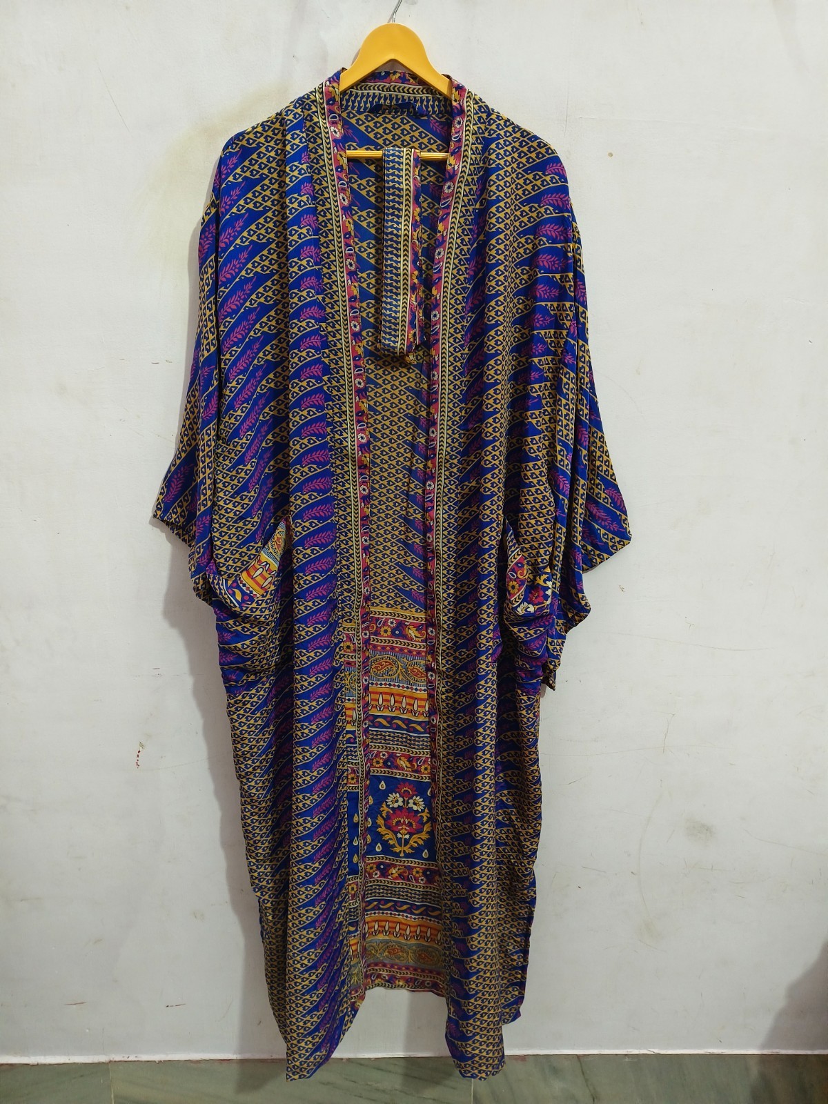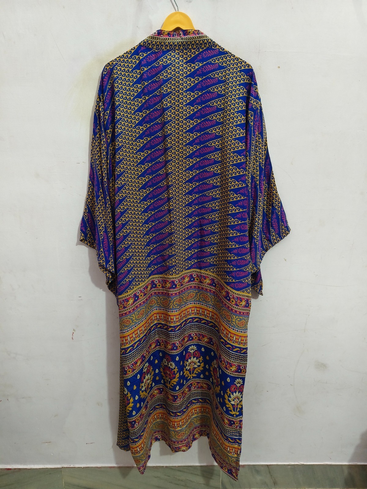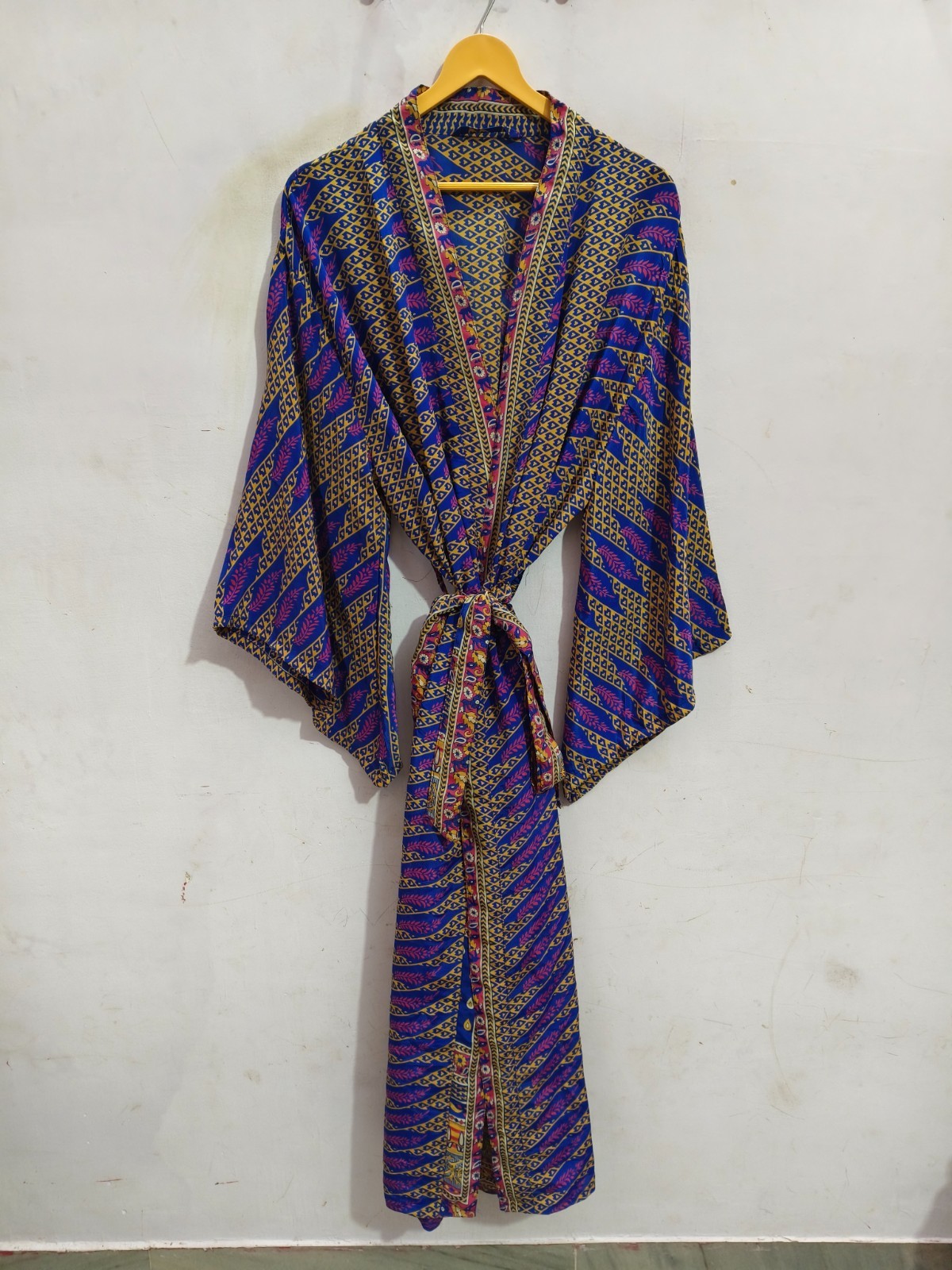 Ankle Length Silk Kimono Robe Summer Wear Soft Bathrobe Free Size Gown L-501