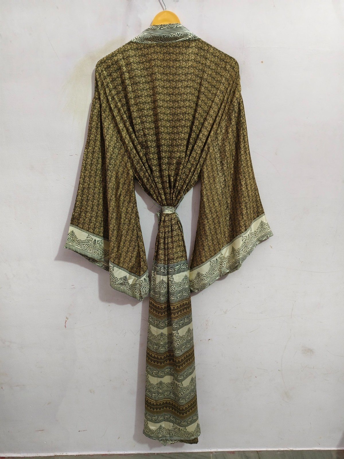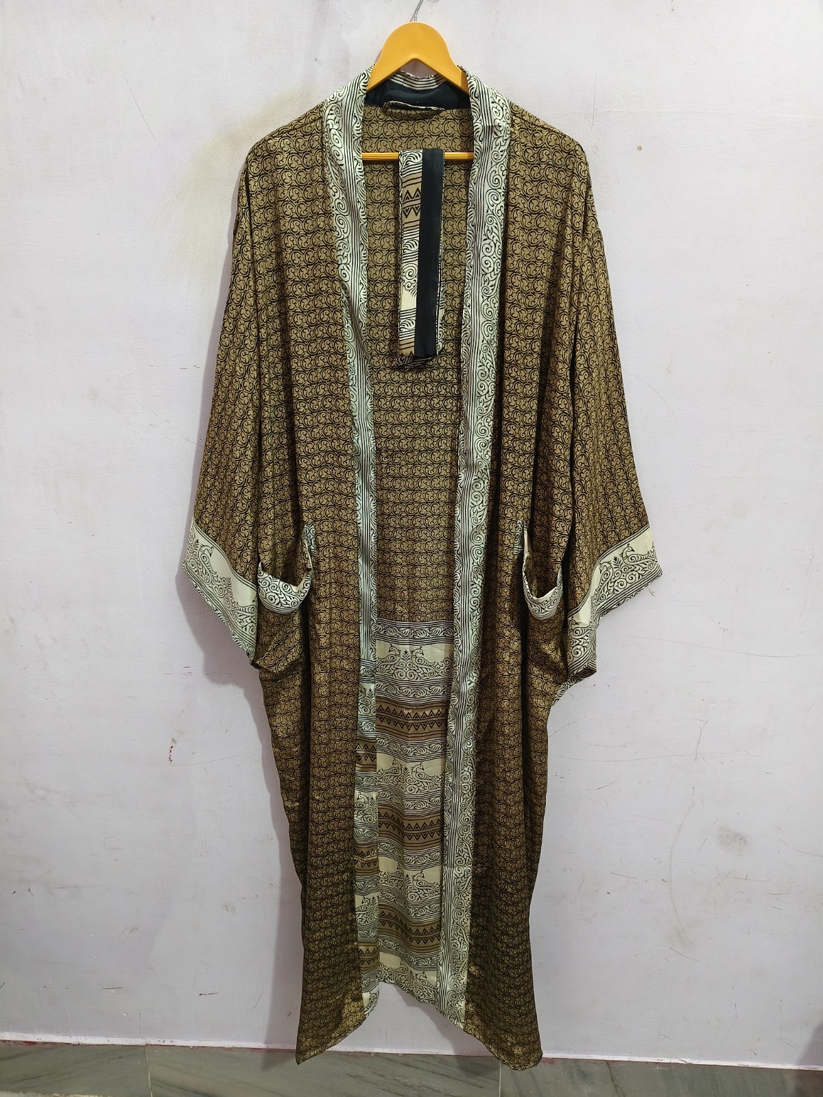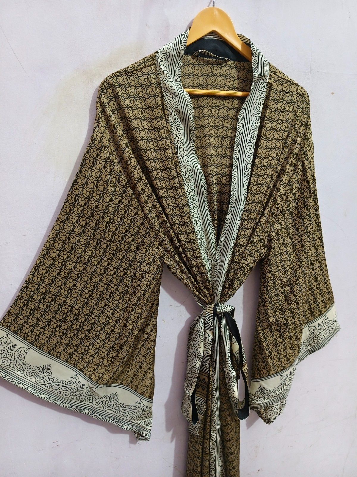 как выглядит Ankle Length Silk Kimono Robe Summer Wear Soft Bathrobe Free Size Gown L-502 фото