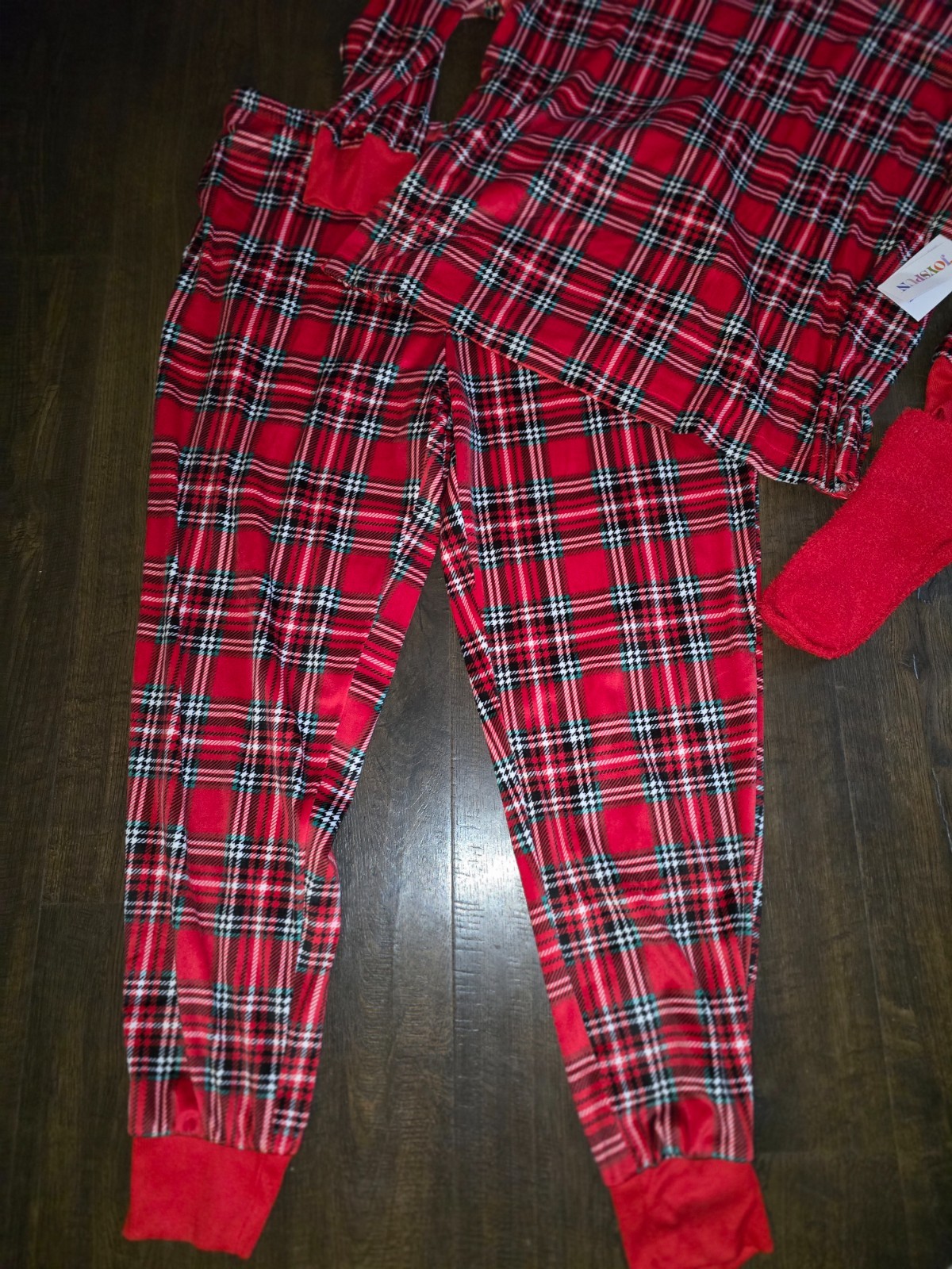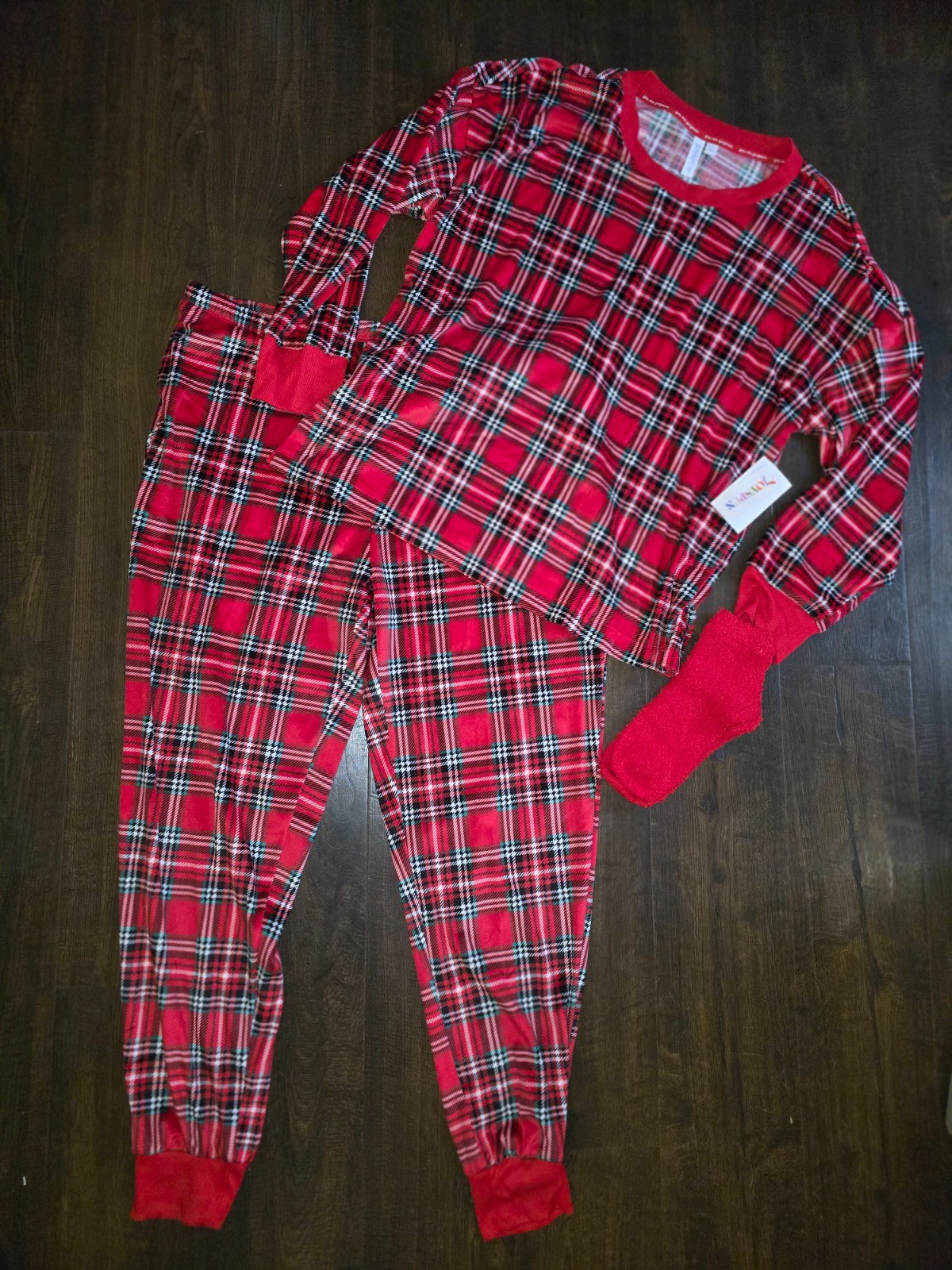 как выглядит Joyspun Pajamas Womans Velour Stretch Red Tartan Plaid SZ L XL 2XL Socks NWT фото