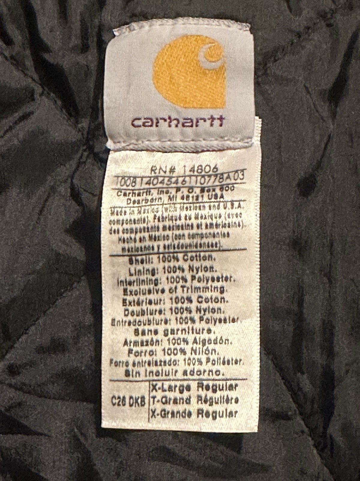 Carhartt Arctic Jacket Canvas Quilt Lined Dark Brown C26 DKB Men s XL NEAR MINT