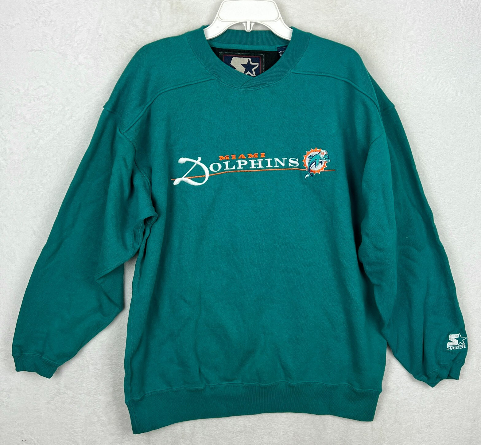 Starter Miami Dolphins Sweatshirt Mens Large Pullover Embroidered Green Vintage