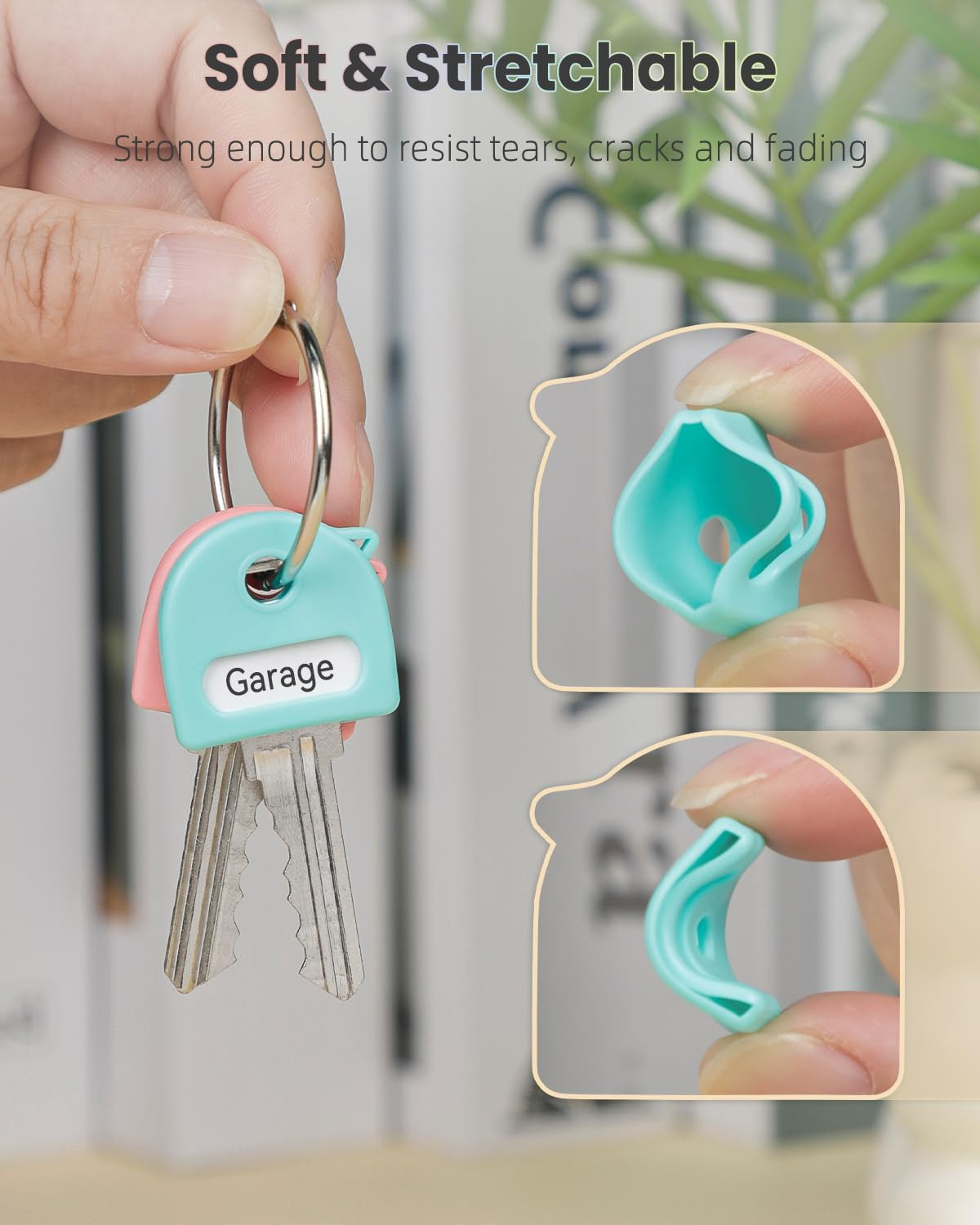 • 10 Pcs Key Covers Caps, 1" Key Identifiers with Labels, Soft Stretchy Key Covers
