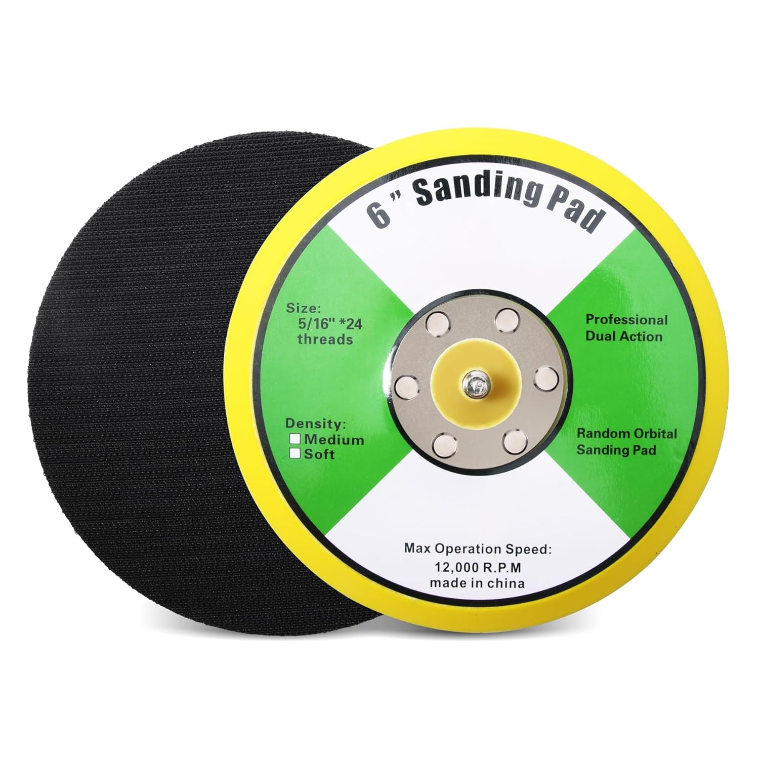 1Pcs 6In Hook and Loop Flexible Backing Pad, 6 Sanding Back Pad 5/16 24 Thread