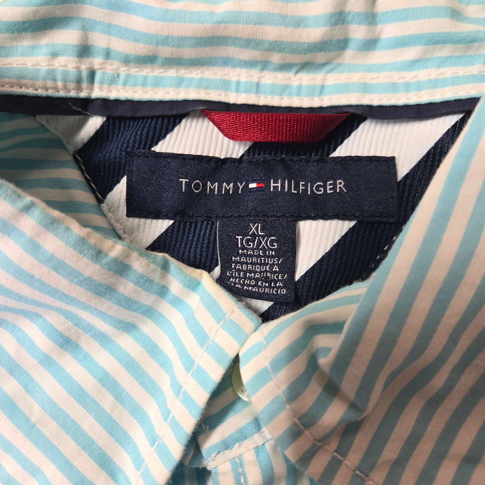 Tommy Hilfiger Shirt Mens XL Green Blue Striped Button Down Long Sleeve Pocket