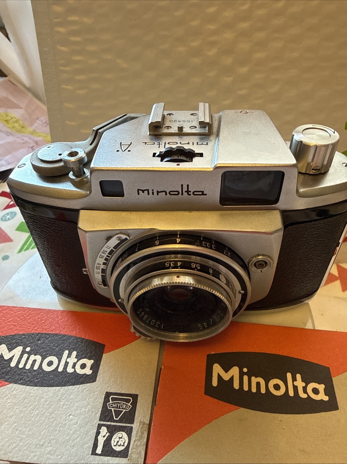 как выглядит Minolta A Rangefinder 35mm Film Camera 45mm Lens AS-IS Untested Parts W/ Papers фото