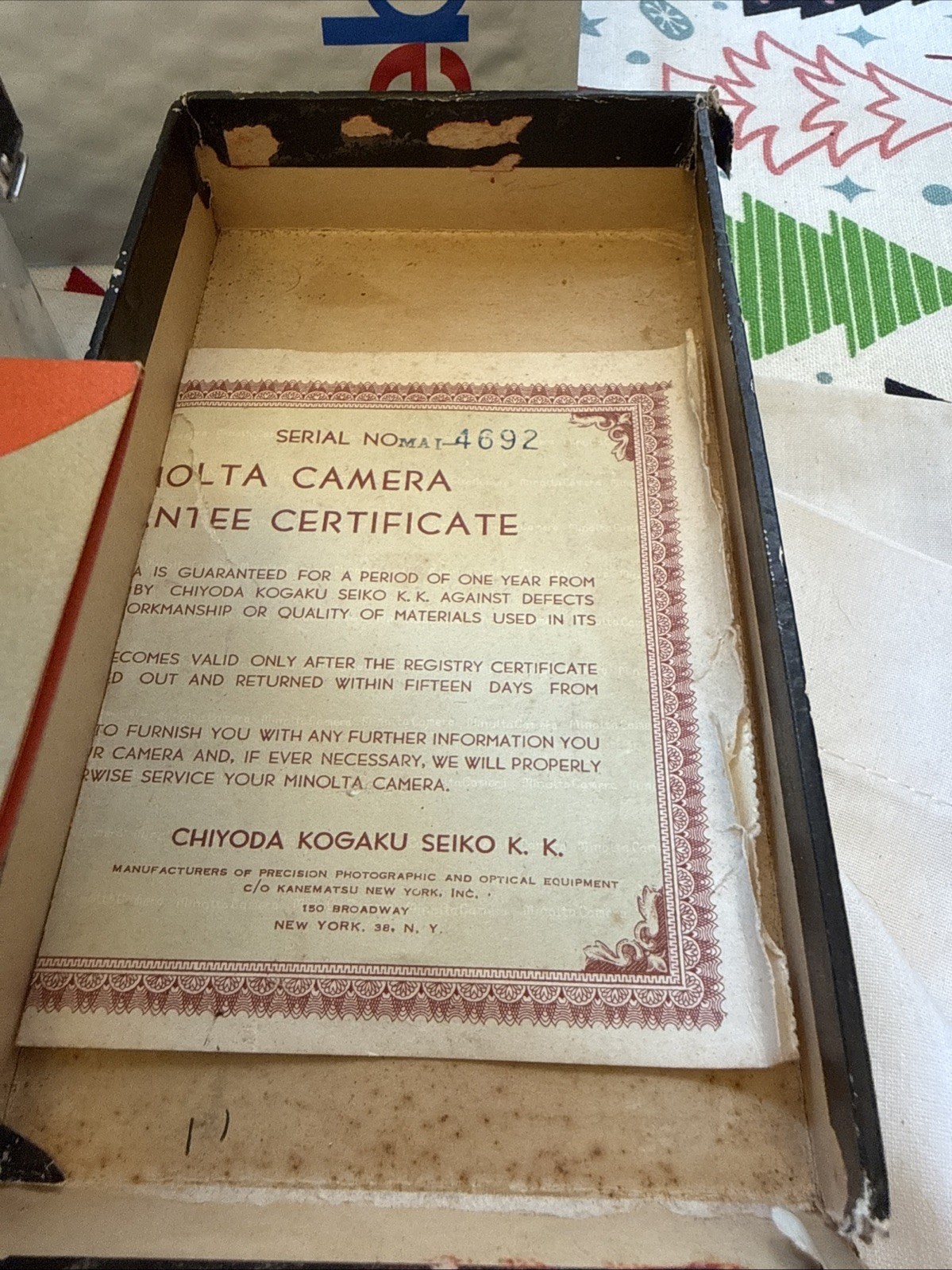Minolta A Rangefinder 35mm Film Camera 45mm Lens AS-IS Untested Parts W/ Papers