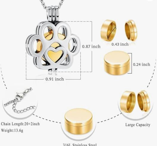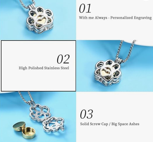 Paw Print Cremation Necklace Jewelry Pendant Urn for Ashes Pet Dog Cat Memorial