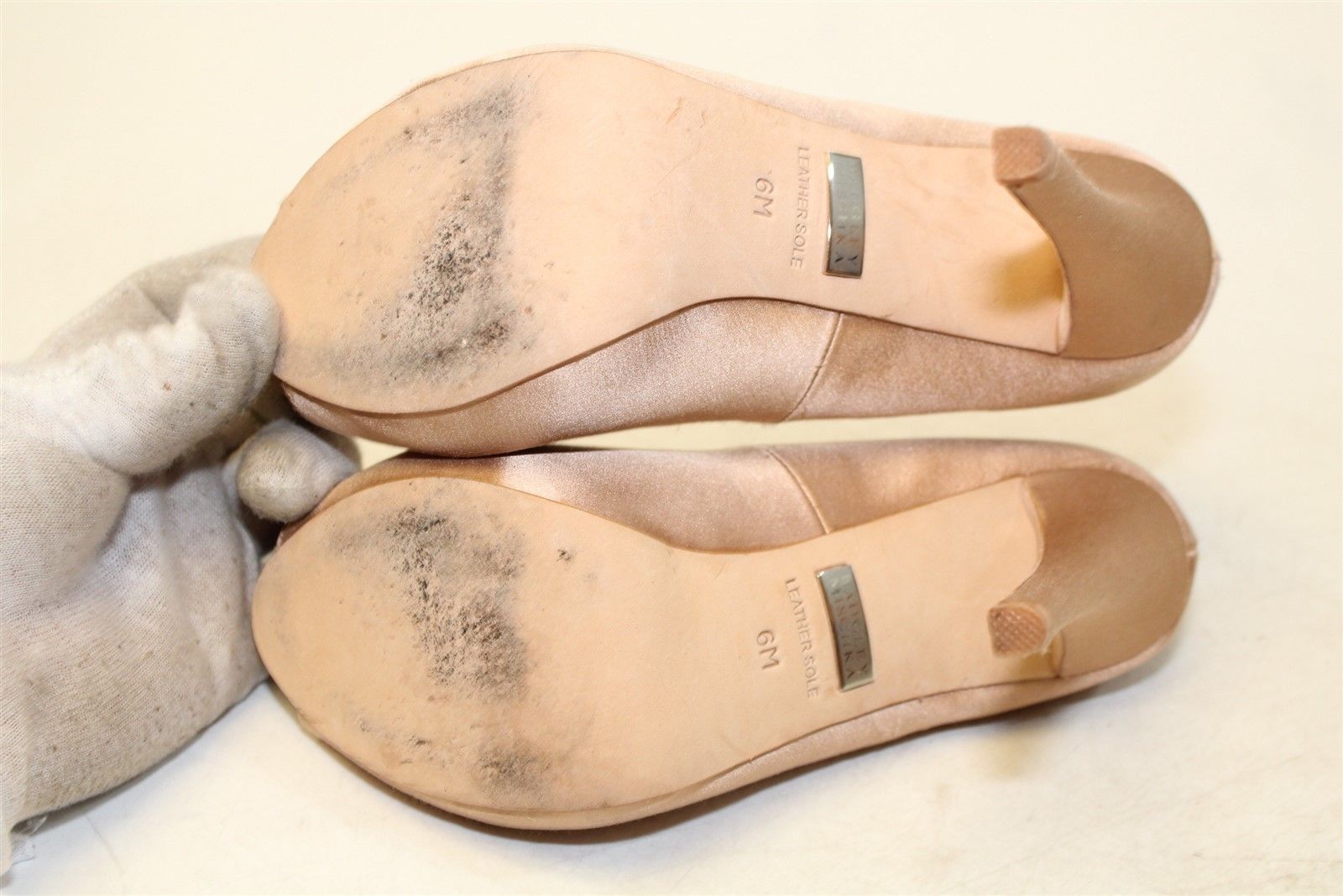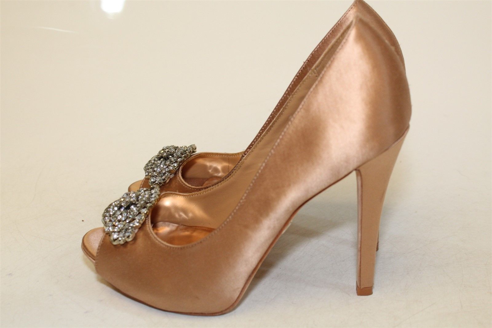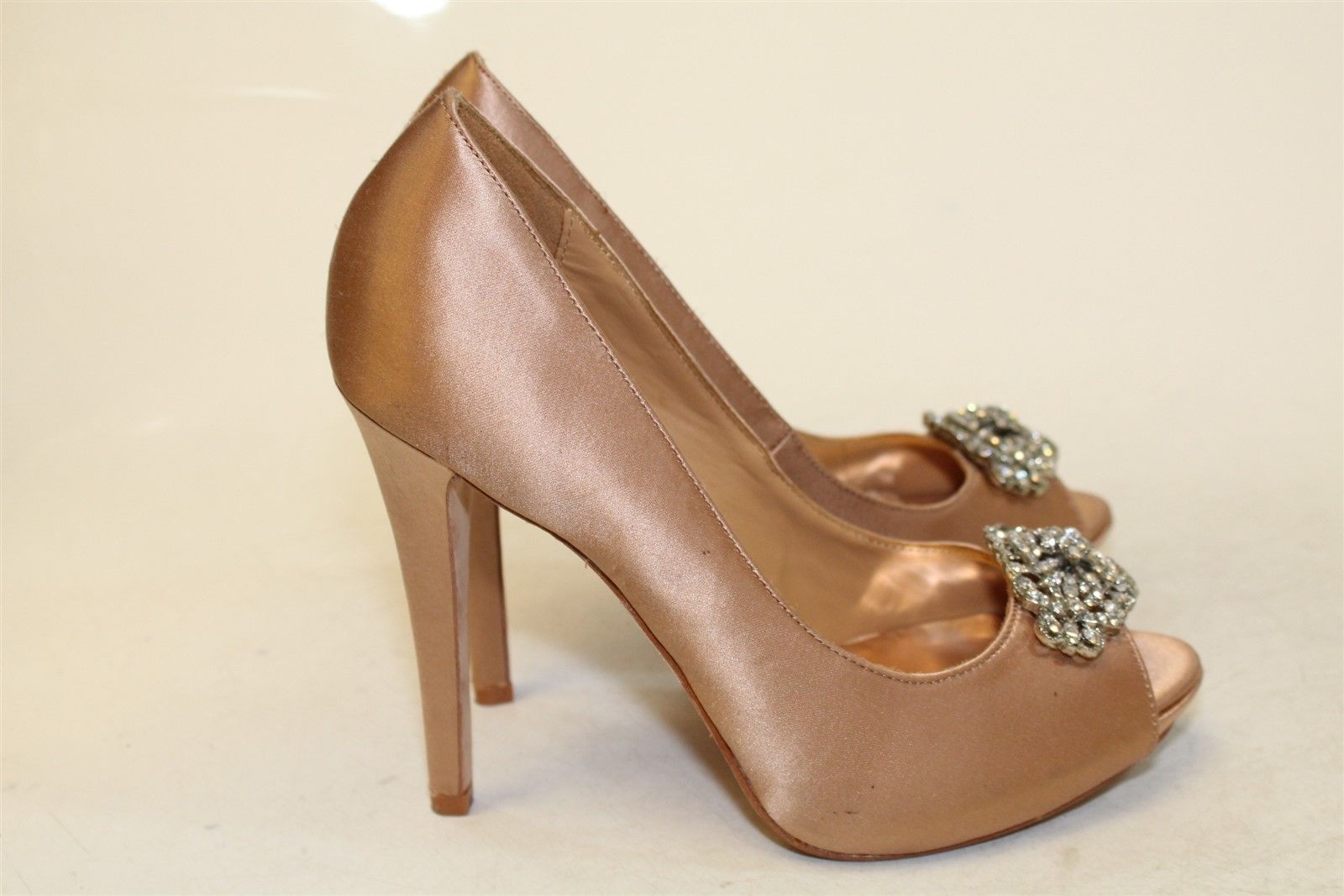 как выглядит Badgley Mischka Womens Satin Pumps Evening Shoes 6M, Crystal Embellished, EUC фото