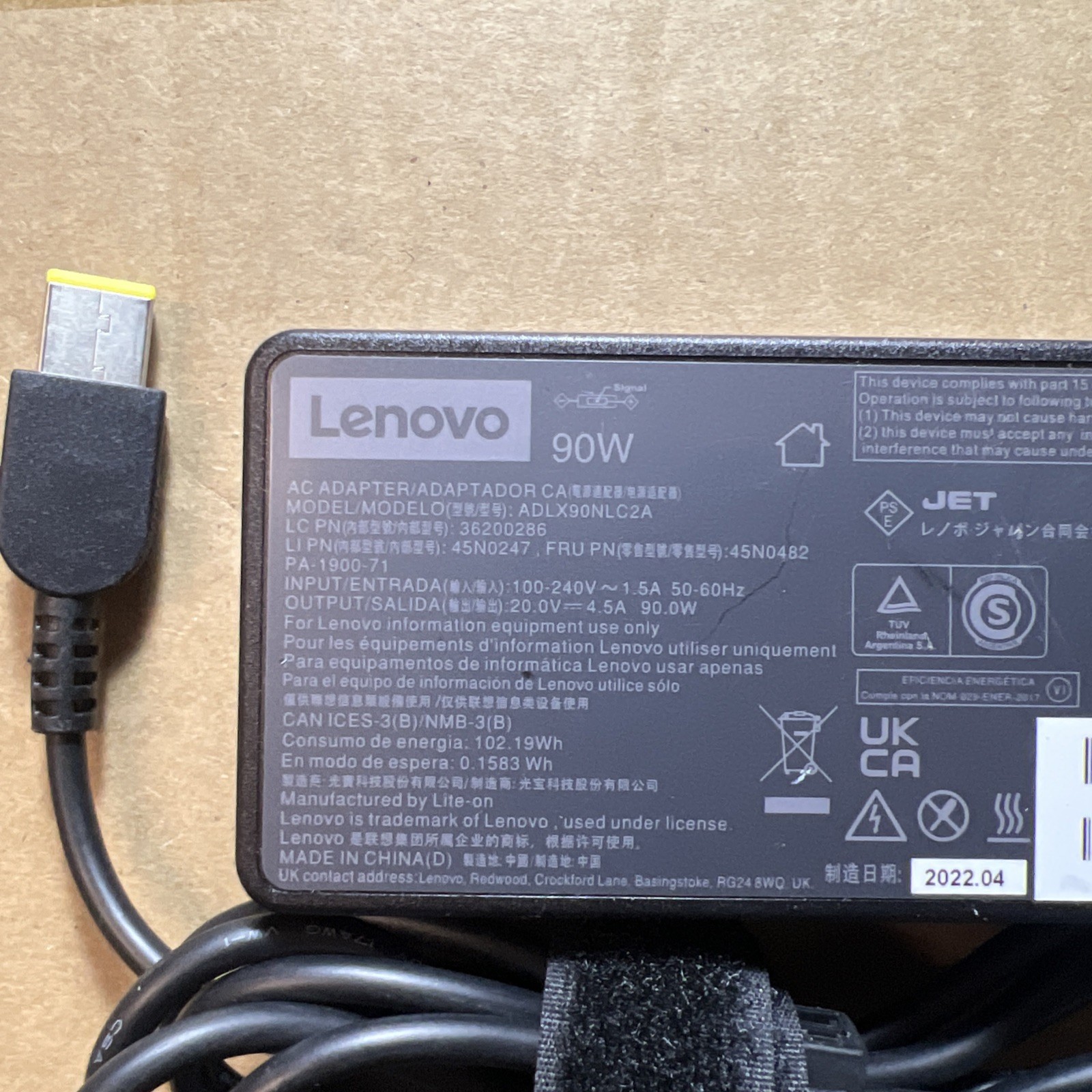 Lenovo ThinkPad 90W AC Power Adapter Square Tip Laptop Charger ADLX90NLC3A