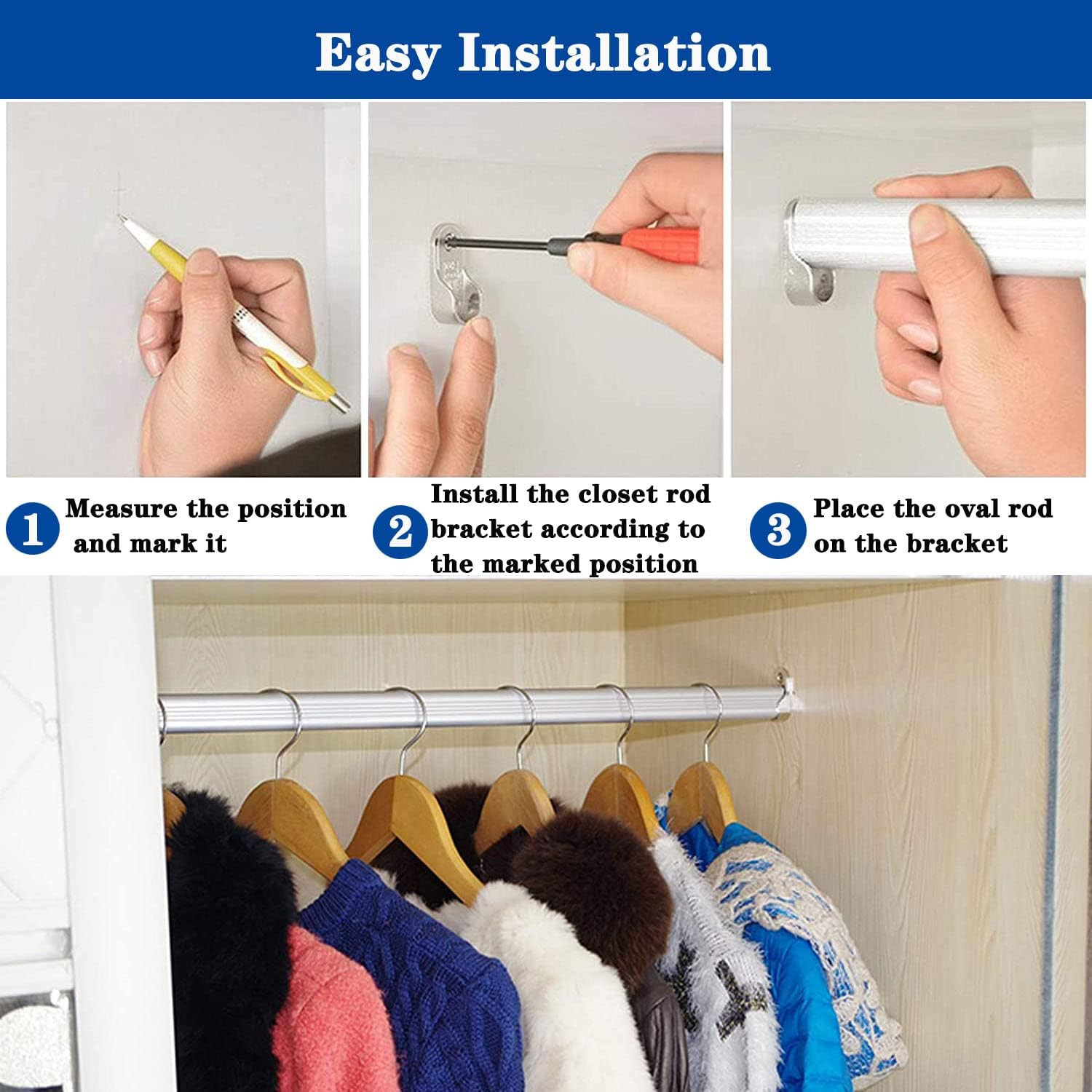 8Pcs Closet Rod Bracket 15Mm X 30Mm Oval Closet Rod End Supports Single Hole w