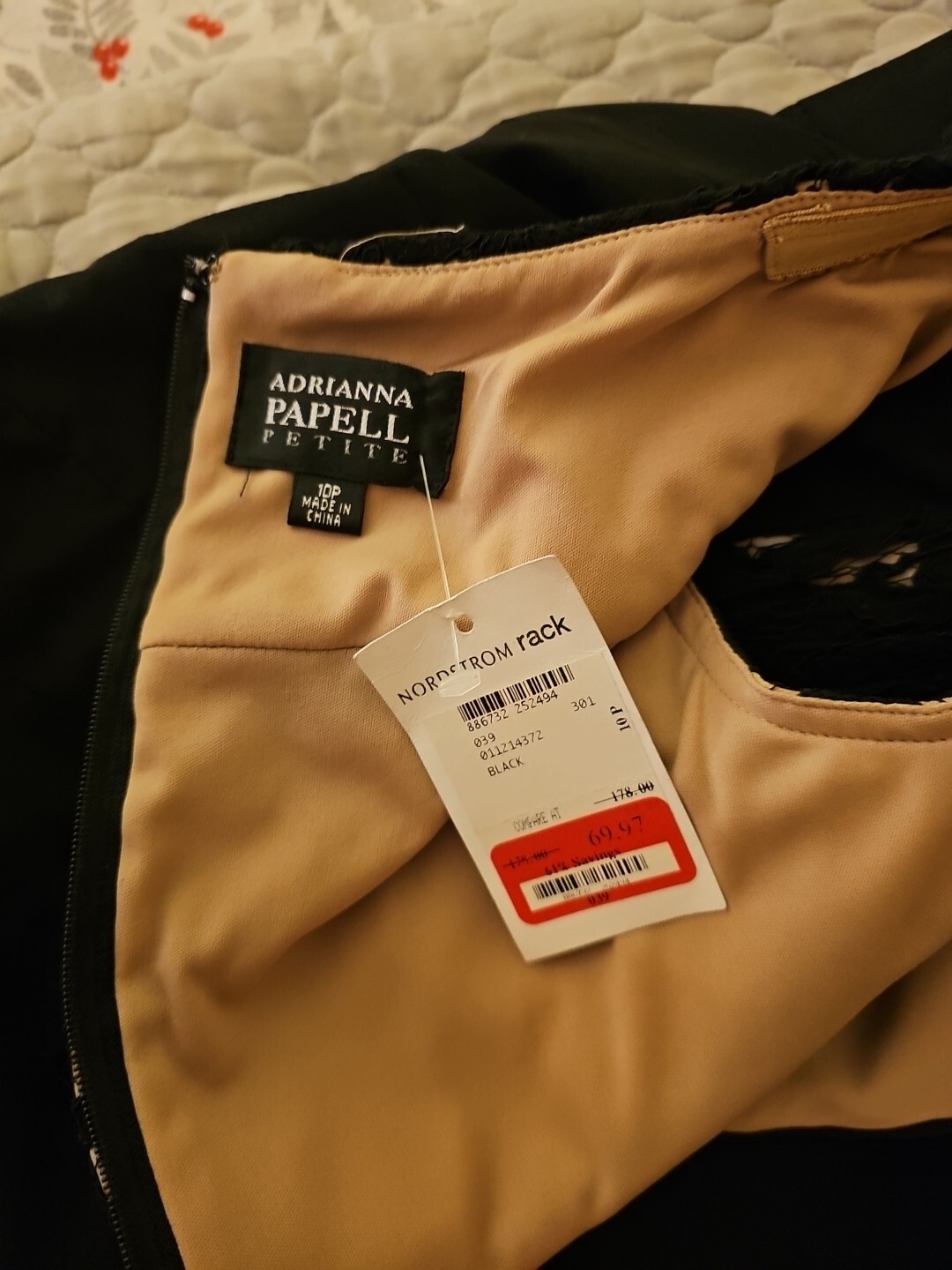 как выглядит LBD Adrianna Papell Elegant Black Coctail Gown 10 Petite Pleated Lace Plunge NWT фото