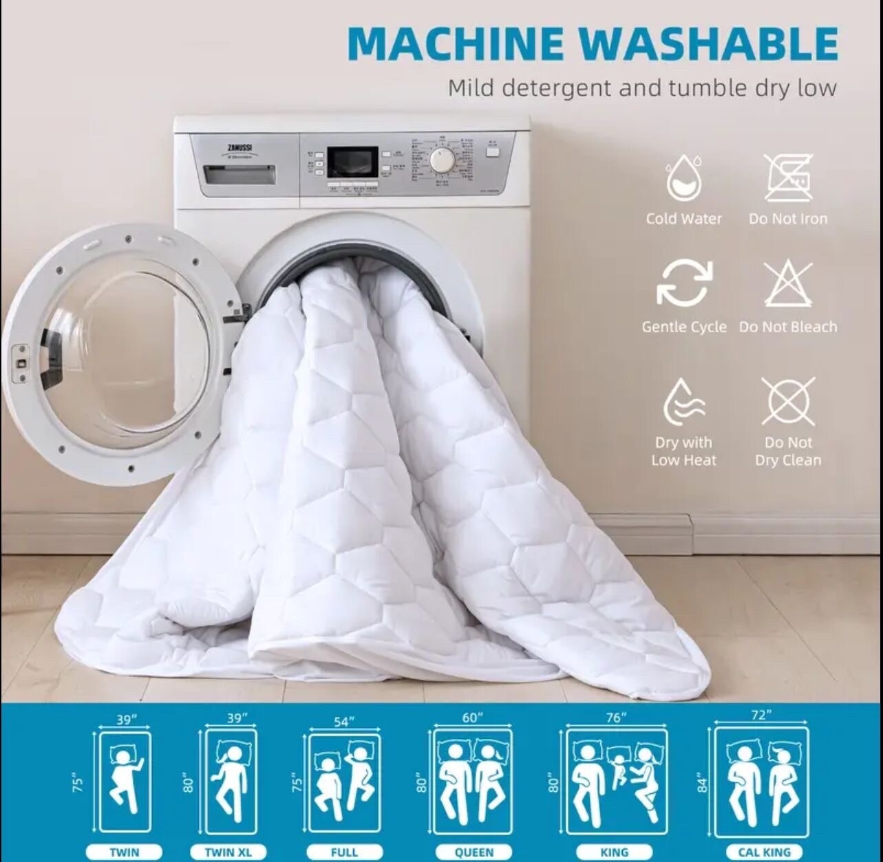 Care Instructions: Easy Care, Machine Wash, Do not Bleach