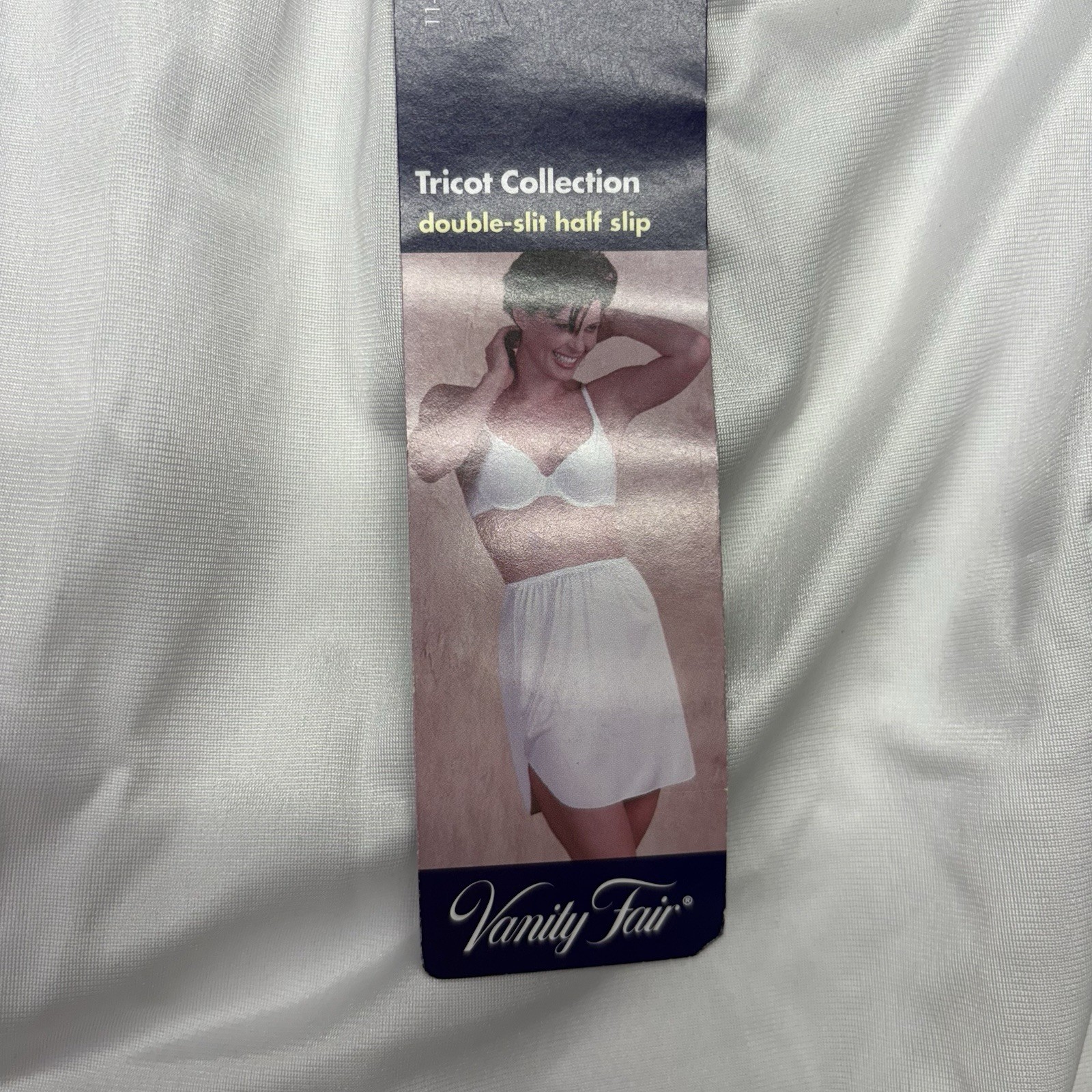 как выглядит Vanity Fair Womens Half Slip Meidum 24" White Double Slit Tricot Midi 11-717 фото