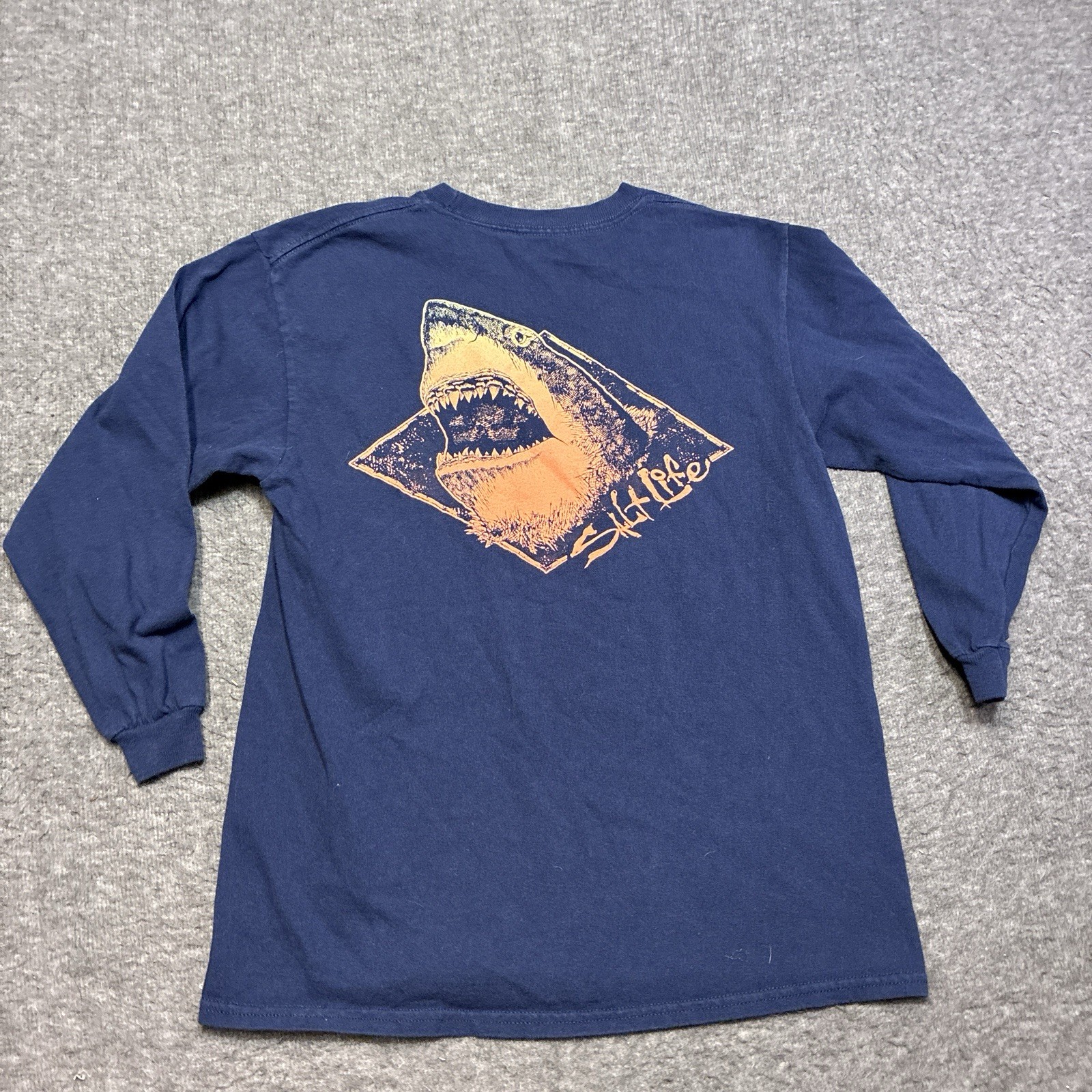 как выглядит Salt Life Live Salty Shark Youth Medium Long Sleeve Blue Cotton Shirt Beach Sand фото