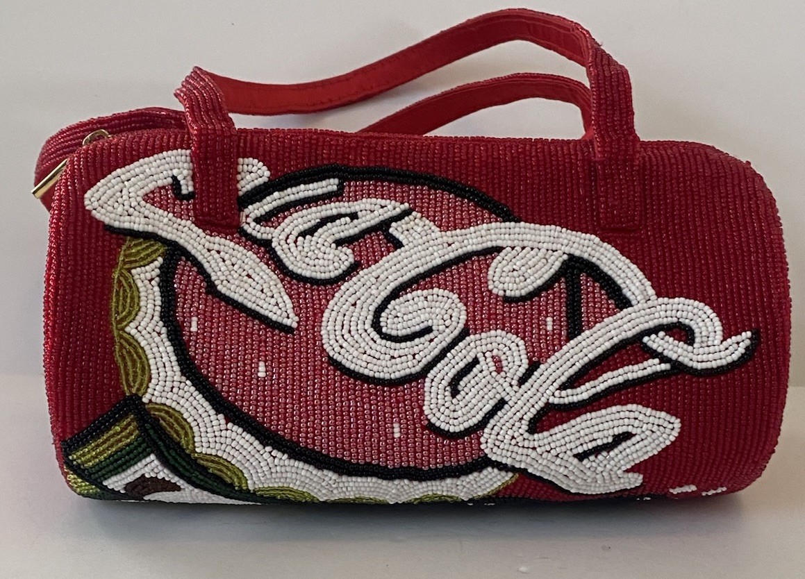 Coca-Cola Women's Hand Beaded Barrel Style Purse American Cold Drink Red Can