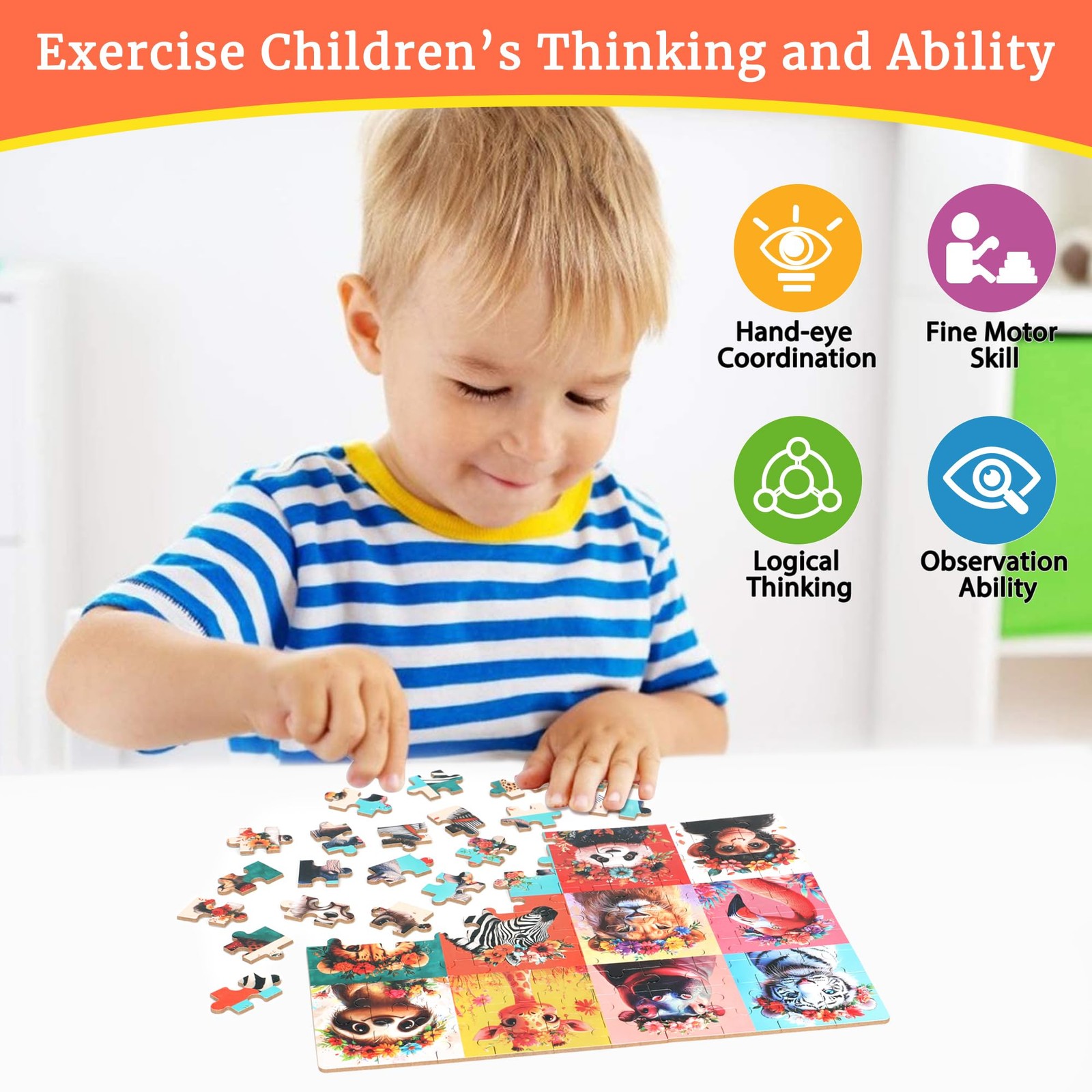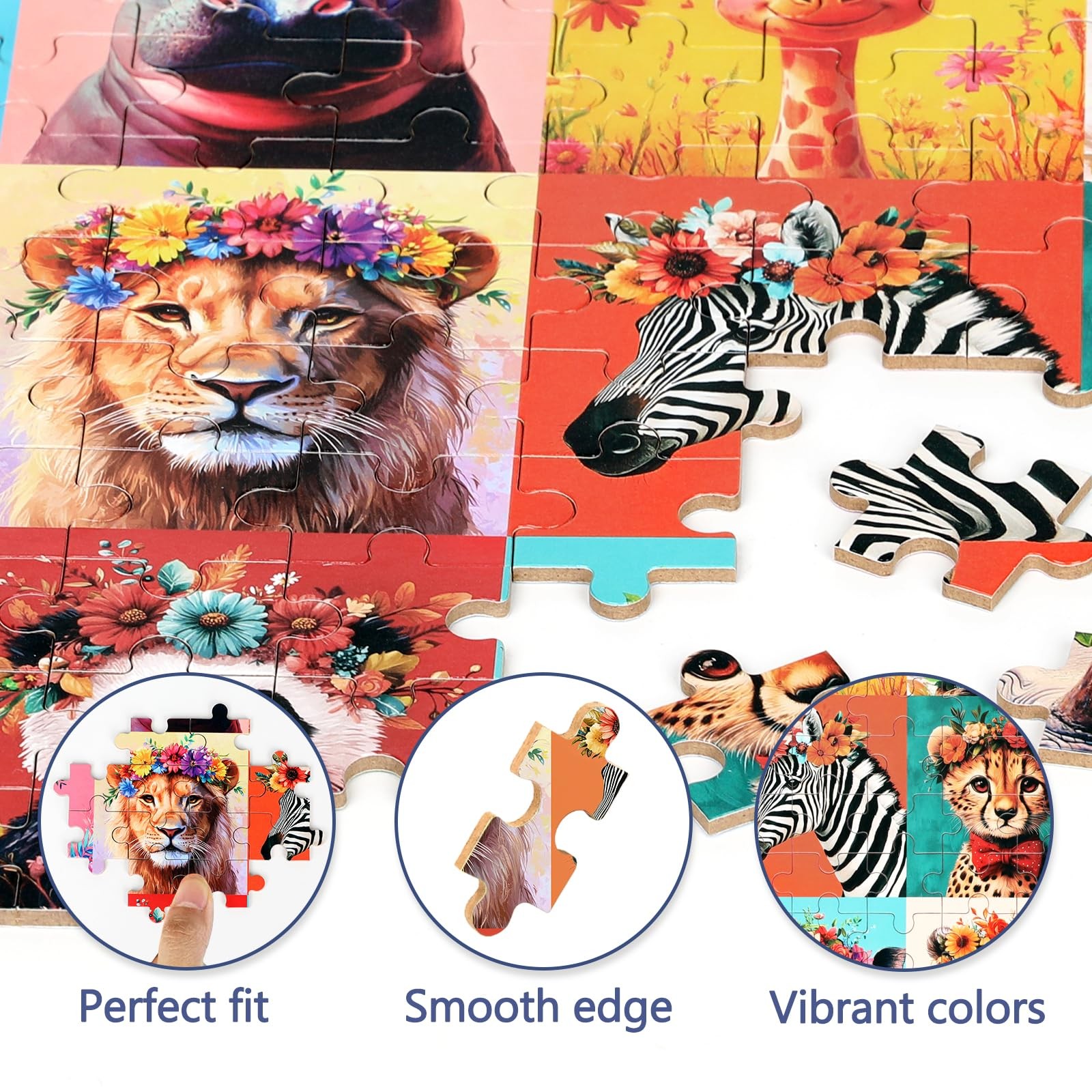 Beautiful Wild Animals Puzzles for Kids Ages 4-8, 100 Pieces Jigsaw Puzzles f...
