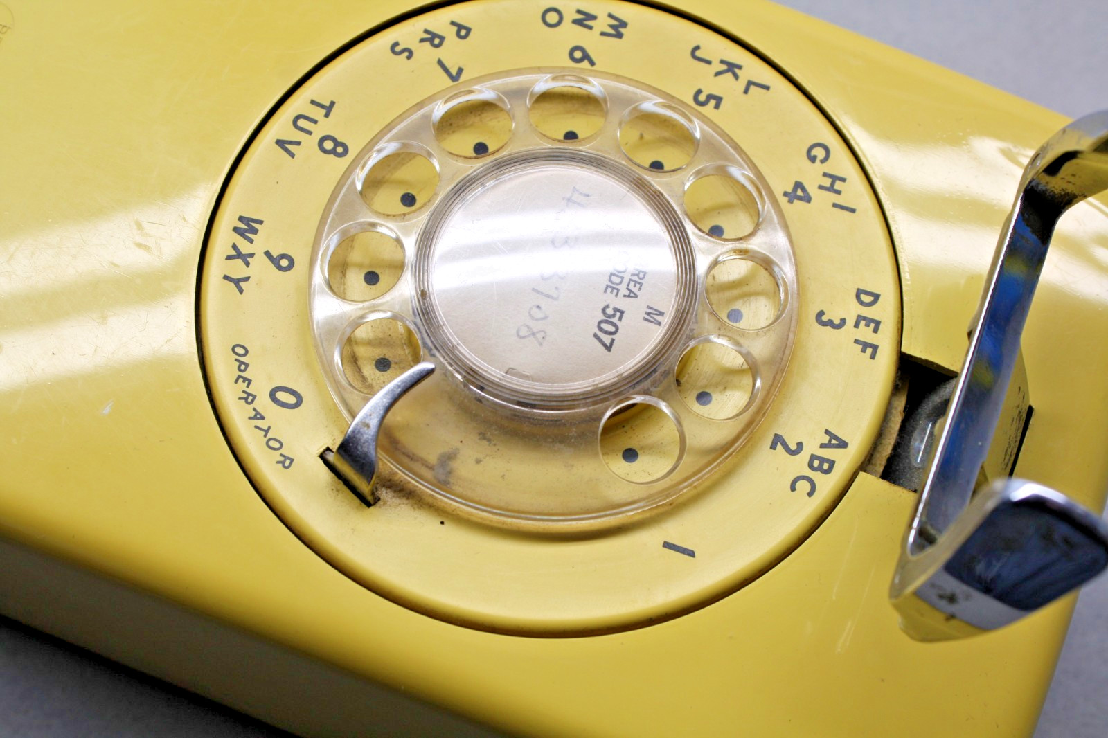vintage Yellow Bell Systems western electric 228 rotary phone, wall mount