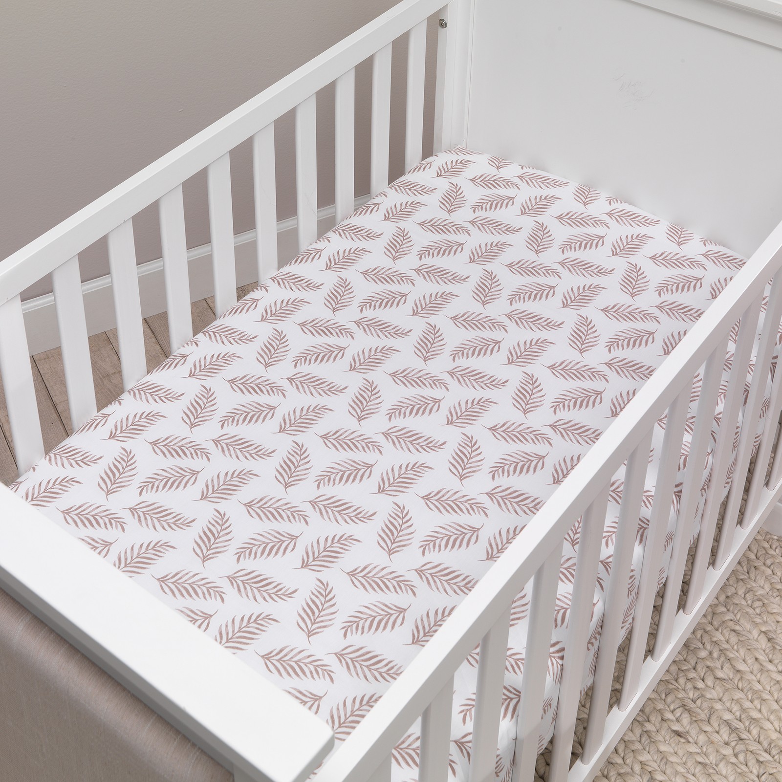 Lambs Ivy Signature Taupe Leaves Print Organic Cotton Fitted Crib Sheet