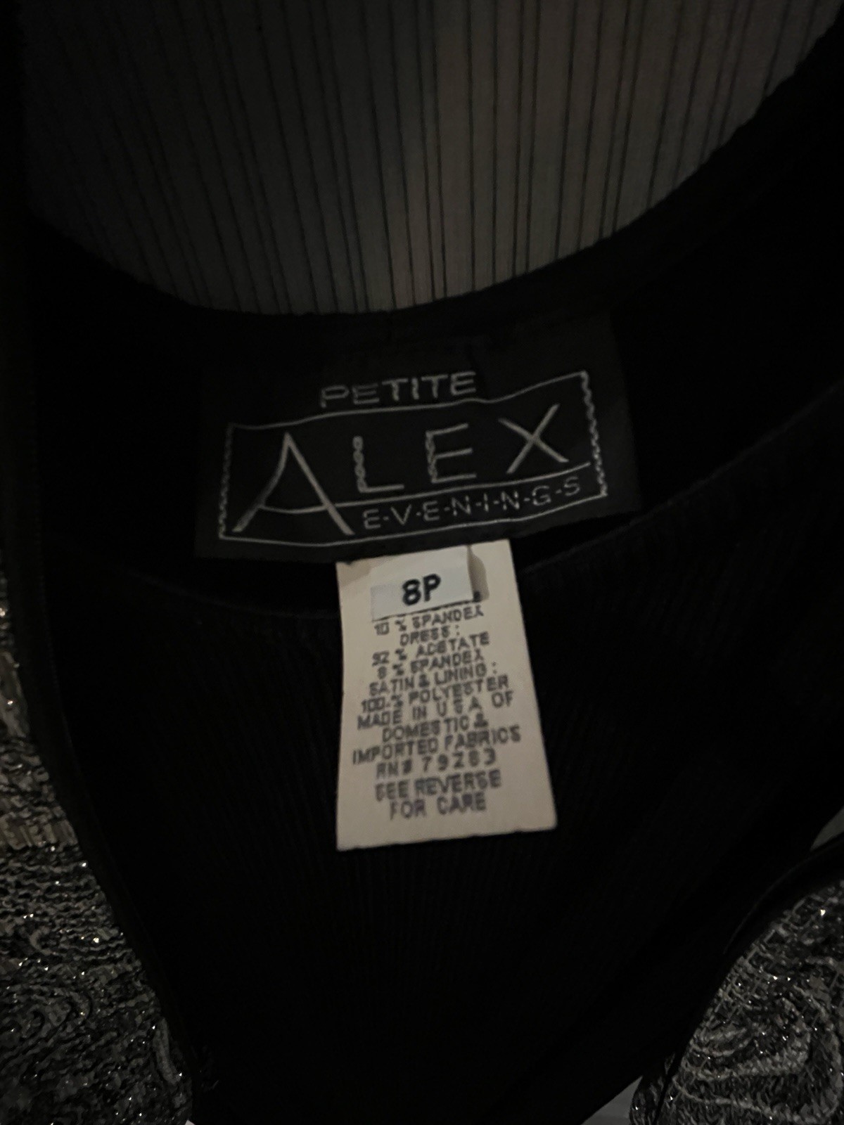 как выглядит Alex Evenings Womens Gown Size 8 petite Pre-owned Black w/ Gray Sequined Jacket фото