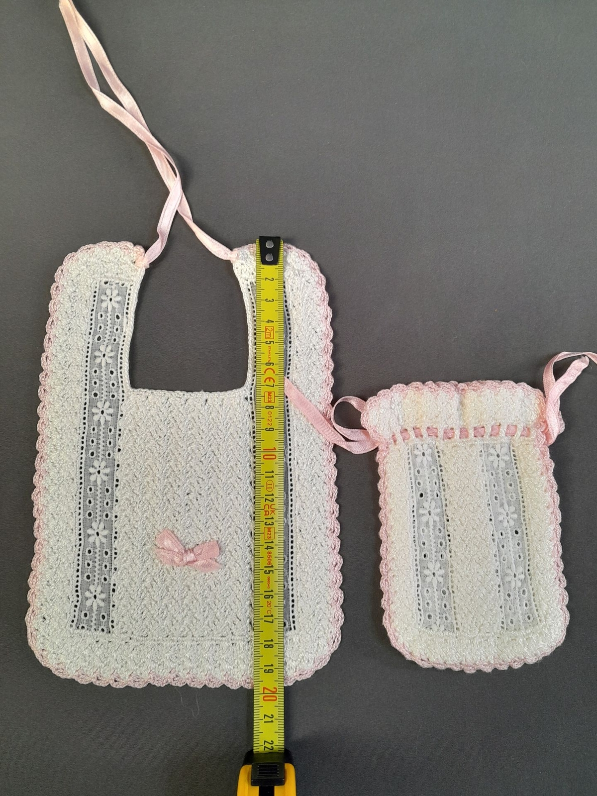 VN-146. Pink Bib And Crochet Bag. Mid 20th Century