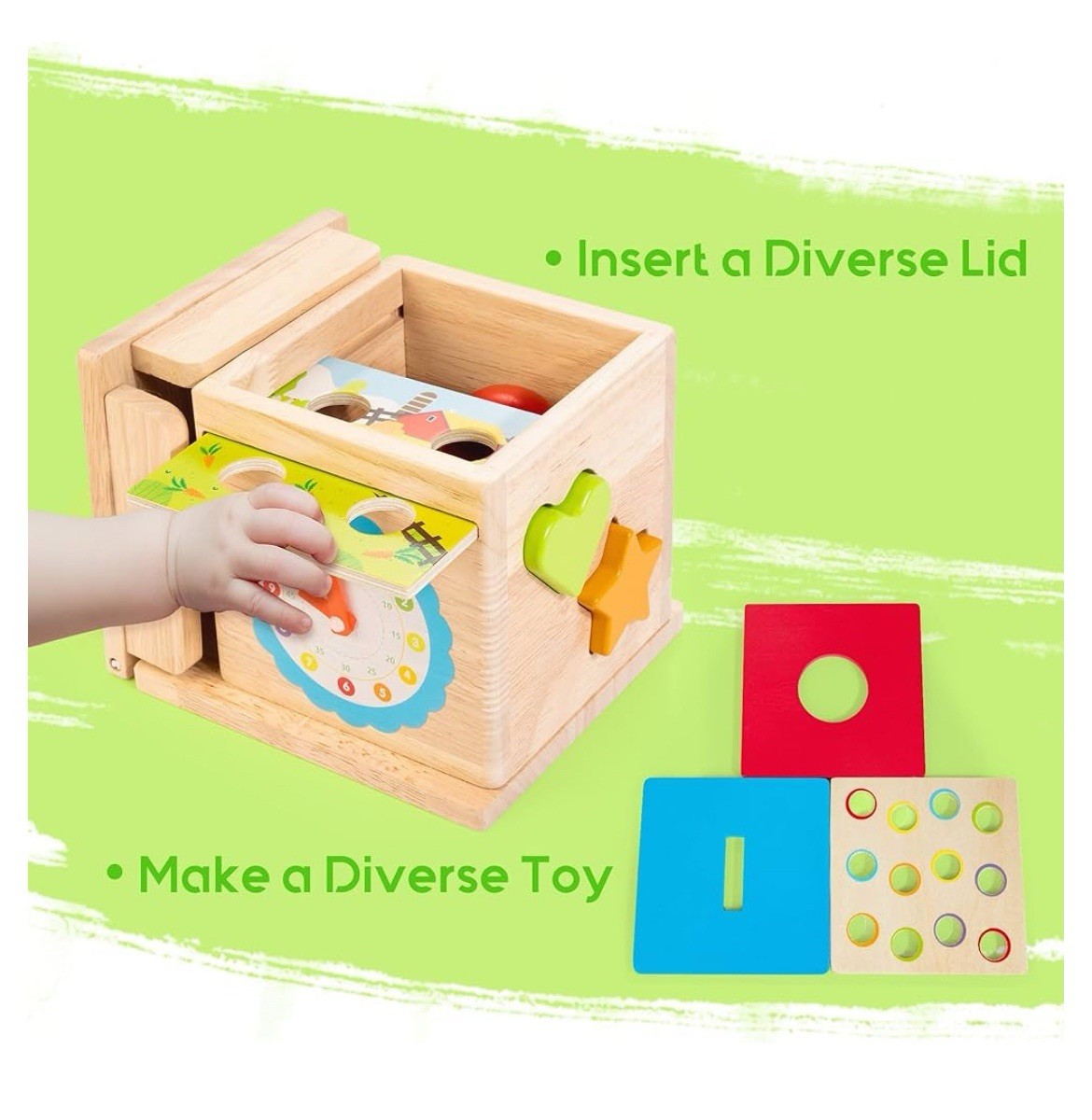 8-IN-1 Activity Cube Multifunctional Wooden Box Kit Montessori Baby Toys