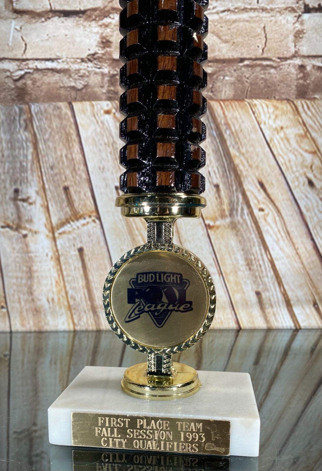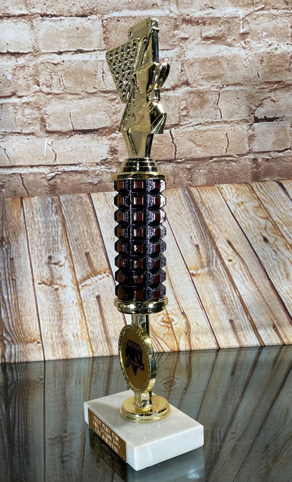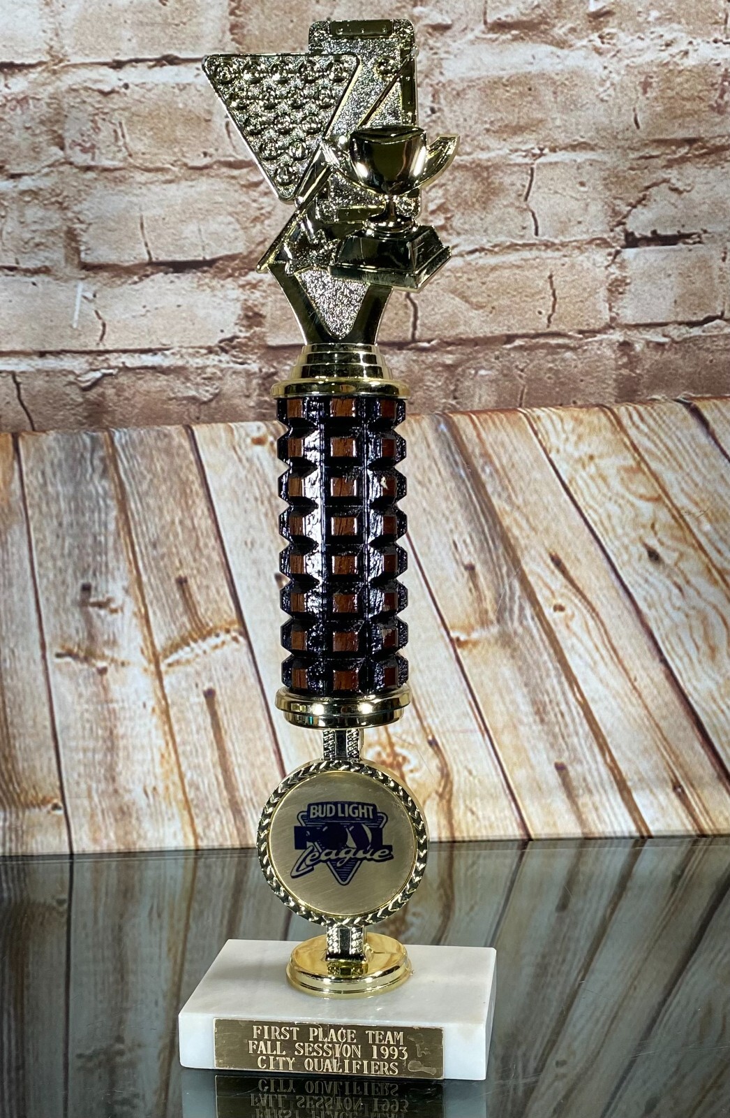 как выглядит Vtg Pool Billiards Trophy BUD LIGHT League 1993 1st Place Marble/Plastic 13.5" фото
