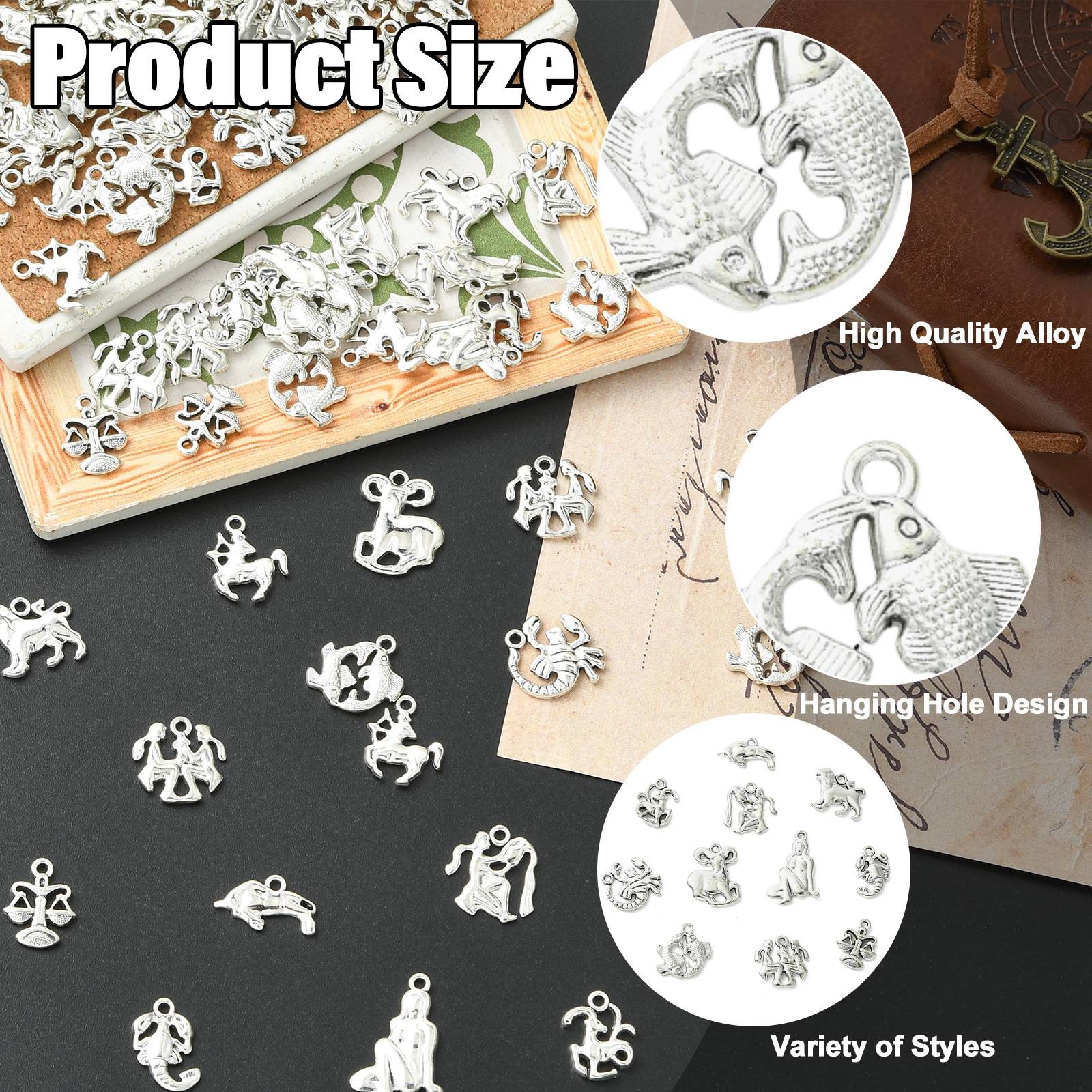 как выглядит 90pcs Zodiac Constellations Charms, Tibetan Style Antique Silver Alloy Pendants фото
