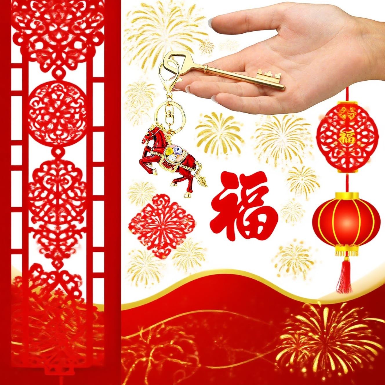 как выглядит 2Pcs Year of The Horse Keychains 2026 Chinese New Year Horse Charm Pendants K... фото