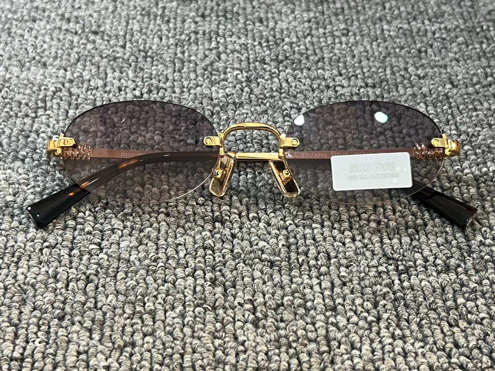 как выглядит Miu Miu MU A54S 5AK04O Gold Gradient Light Grey Oval Rimless Sunglasses фото