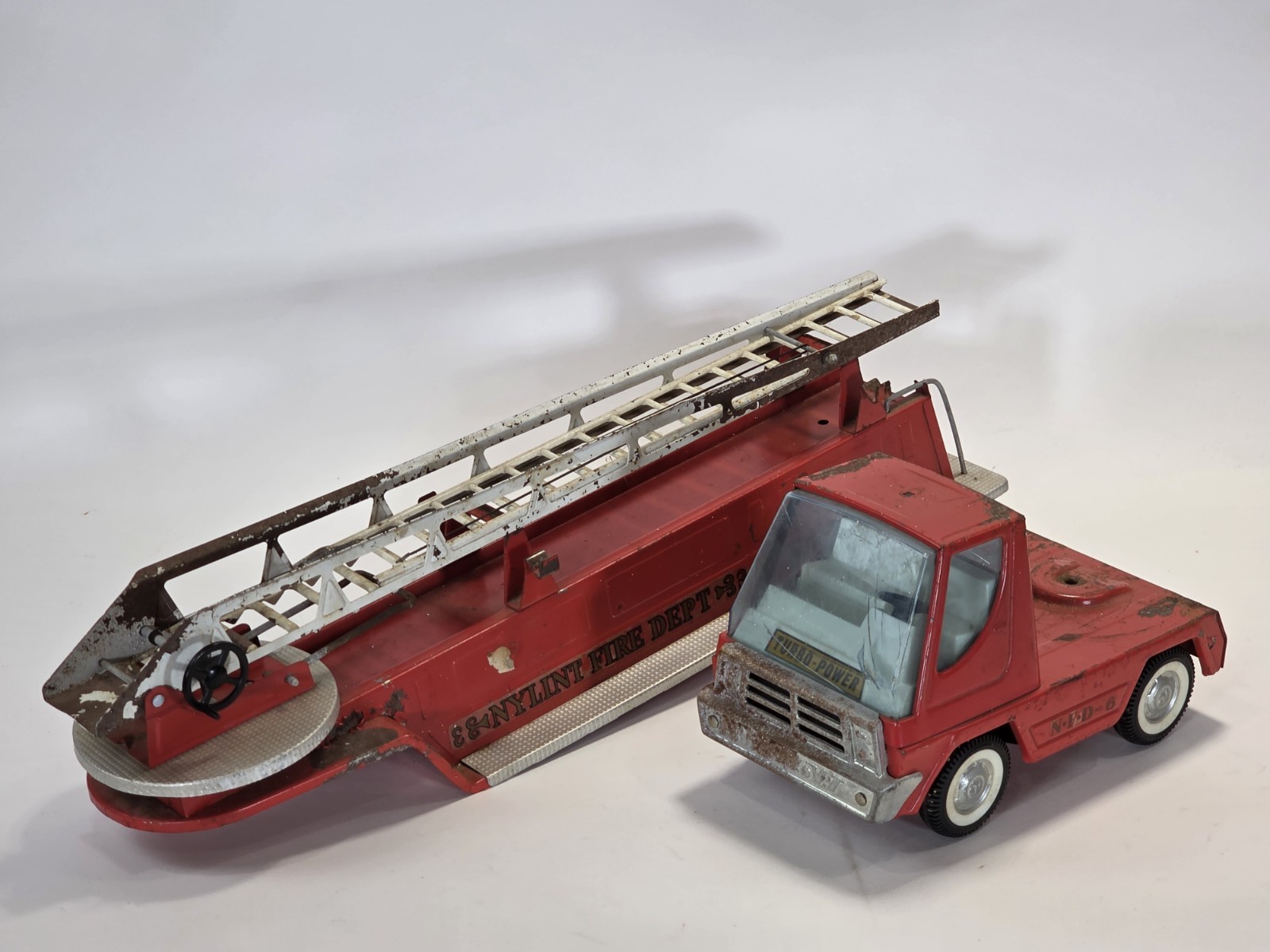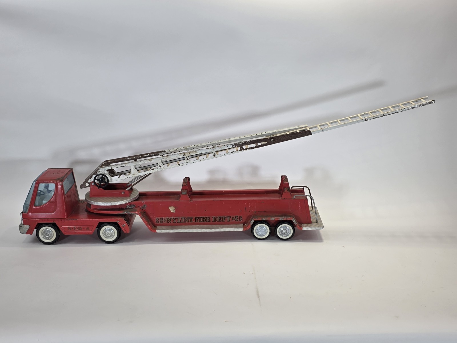 VINTAGE NYLINT AERIAL HOOK N LADDER FIRE ENGINE DEPARTMENT TRUCK CO. 6 STEEL TOY
