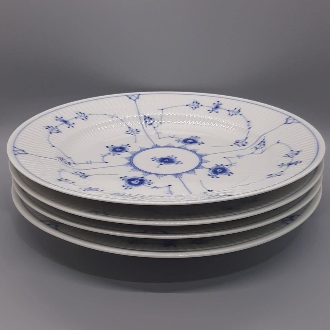 как выглядит Royal Copenhagen Blue Fluted Plain Dinner Plate Set Of 4 DENMARK 175 Dated 1966 фото
