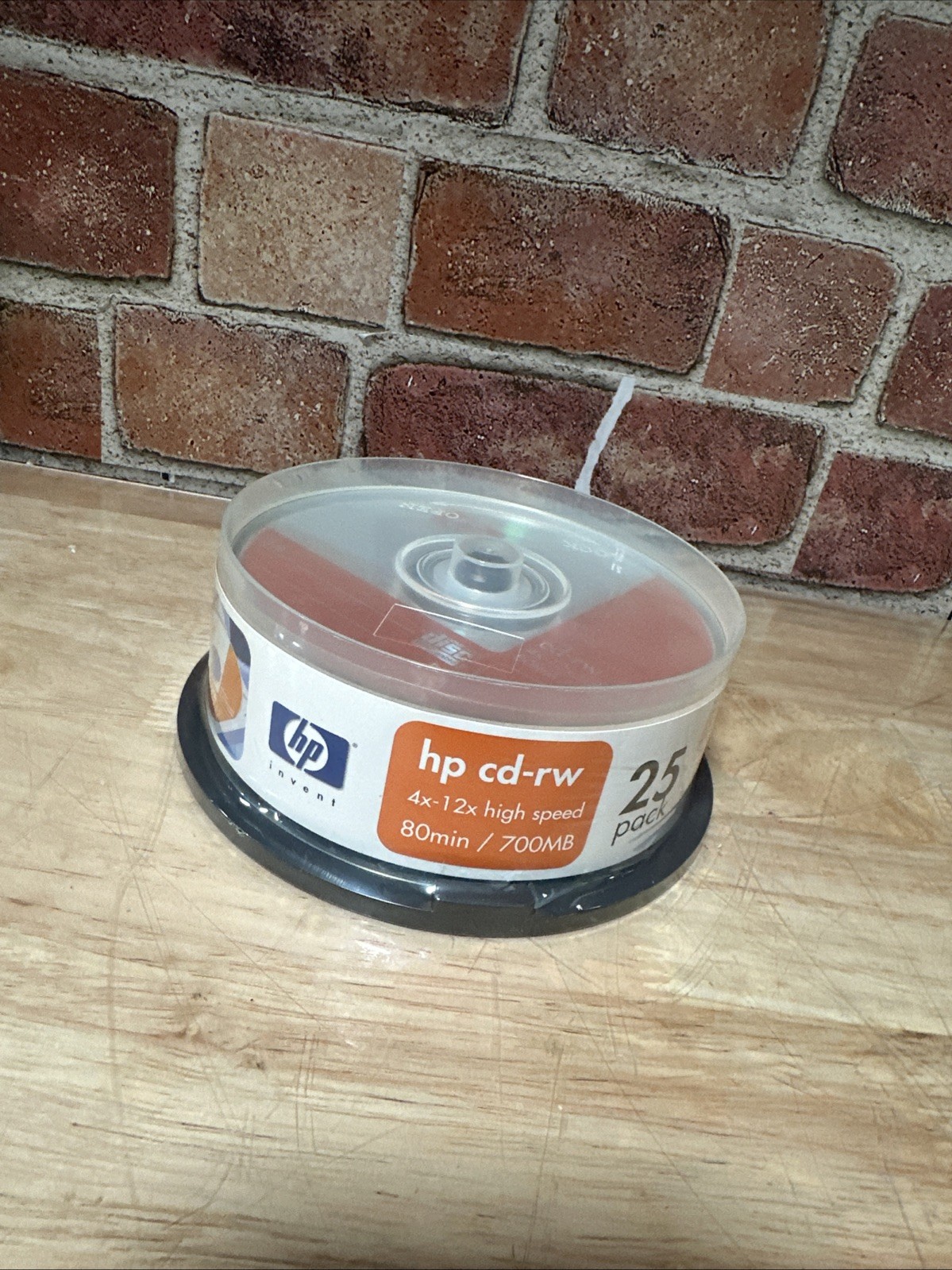 NEW HP invent CD-RW 12X Blanks Media Discs 80 Min 700 MB Orange Silver 25 Pack