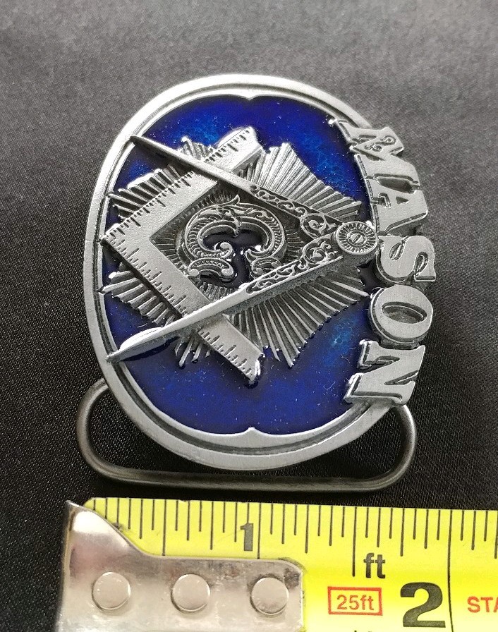 MASON MASONIC SQUARE COMPASS BLUE LODGE G BELT BUCKLE MADE IN USA C J INC 1985