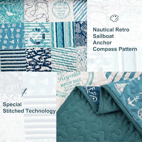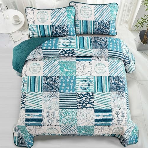 Summer Nautical Ocean Quilt Set Size Beach Coastal Twin Beige Blue Green