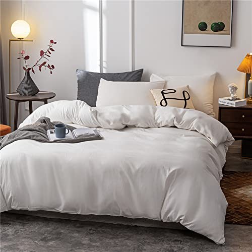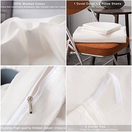 Washed Cotton Duvet Cover Ultra Soft 100 Cotton Solid Color Duvet Twin White